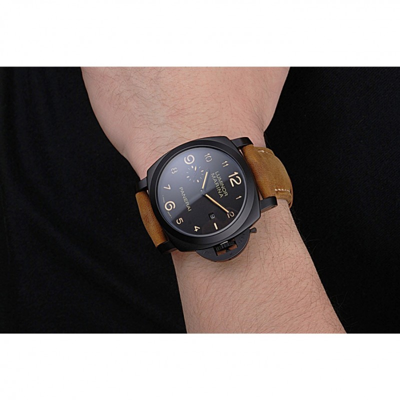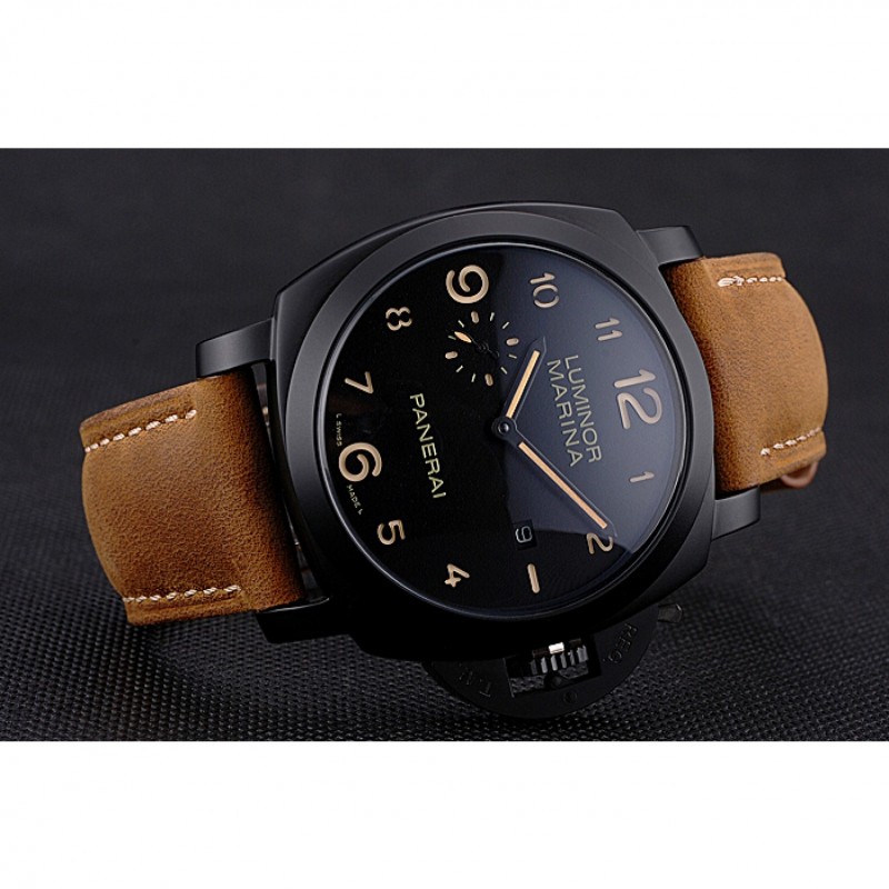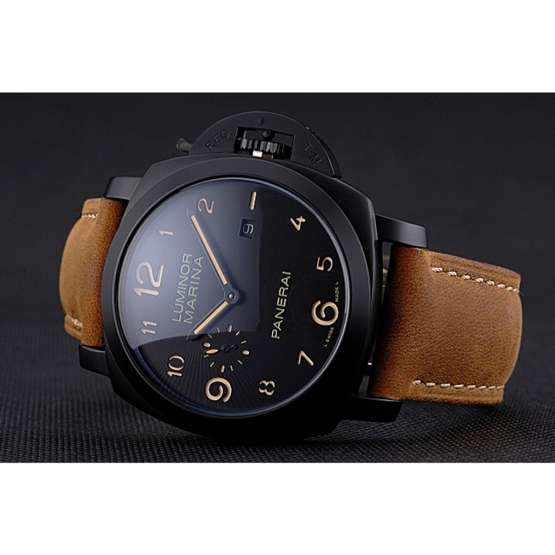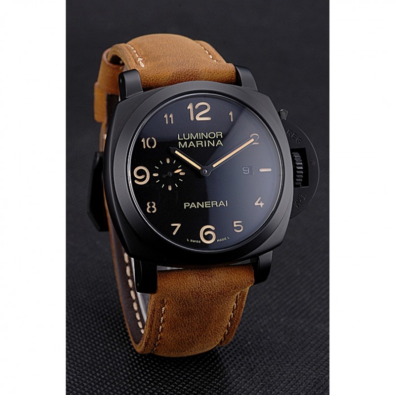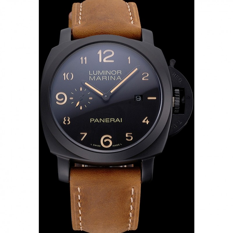 Alta calidad Panerai Luminor Marina 1950 Negro Dial correa de cuero Negro mate caja de acero Ante Marrón