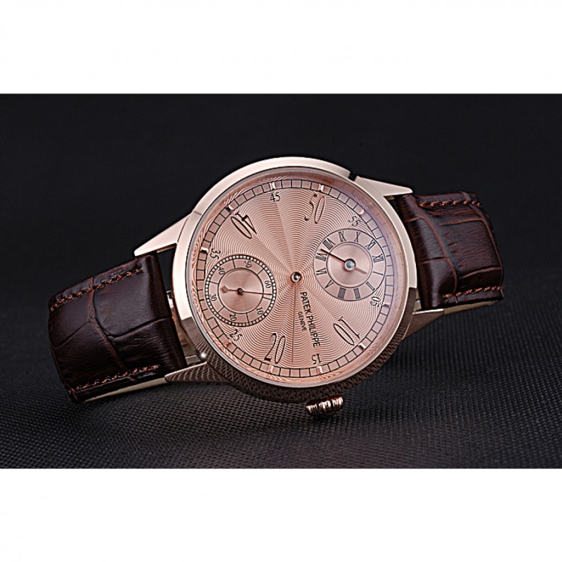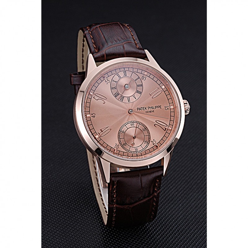 Alta calidad Patek Philippe Geneve Dos línea rosa Dial de oro rosa Bisel Brown banda de cuero 622149
