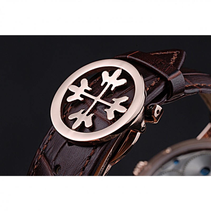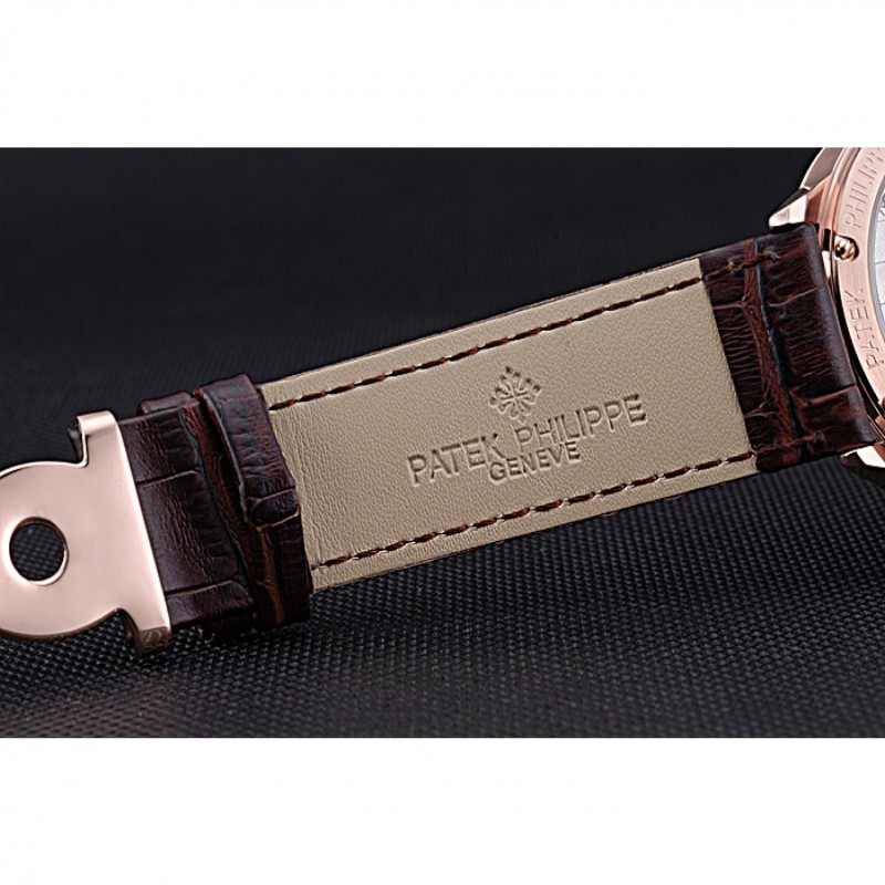 pulsera: logotipo y correa de piel de cocodrilo marrón en relieve de calor Patek Philippe Geneve rosa de 18 quilates chapado en oro calado logotipo corchete del gancho