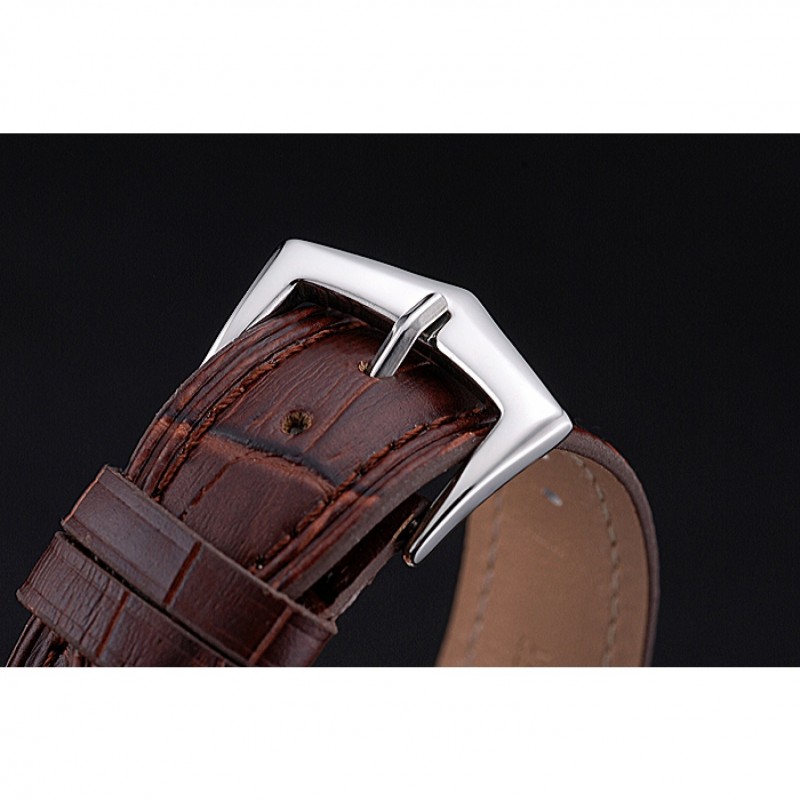 pulsera: logo y Patek calor Philippe Geneve en relieve correa de piel de cocodrilo marrón con acero inoxidable pulido gancho hebilla de cierre