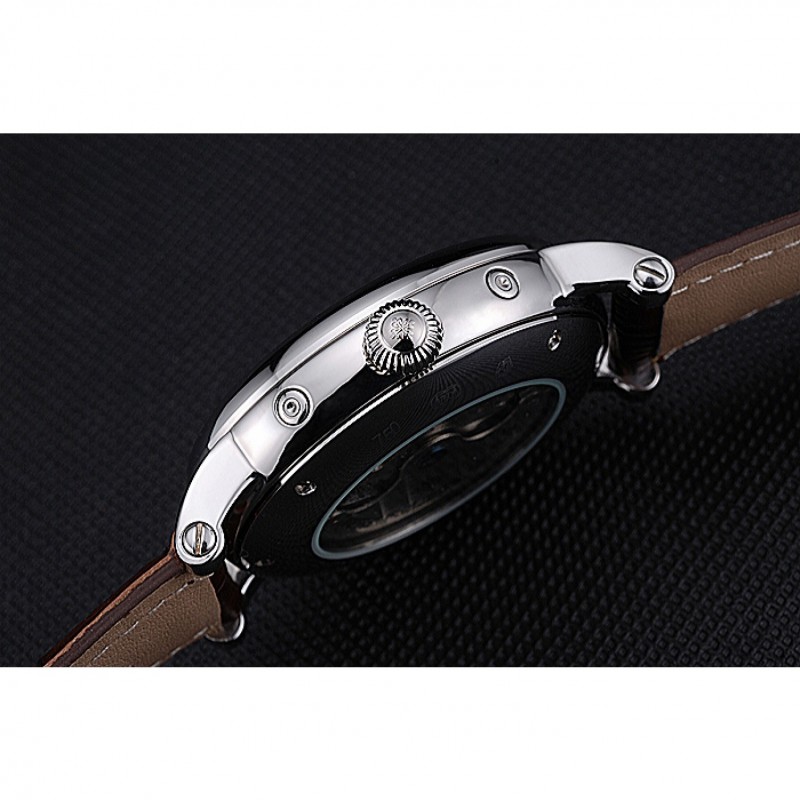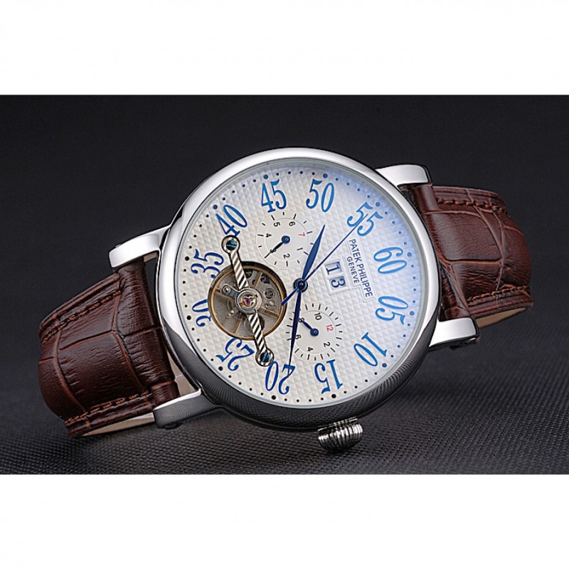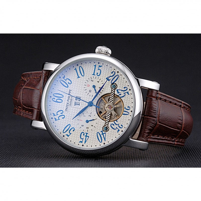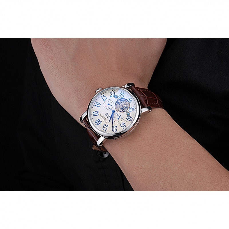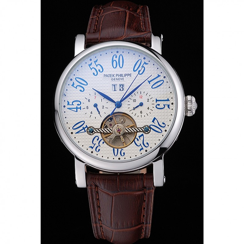 Alta calidad Patek Philippe Grand complicaciones caja de acero inoxidable Esfera Blanca números romanos Brown pulsera de cuero 622257