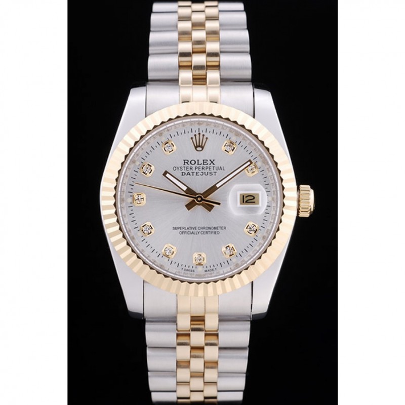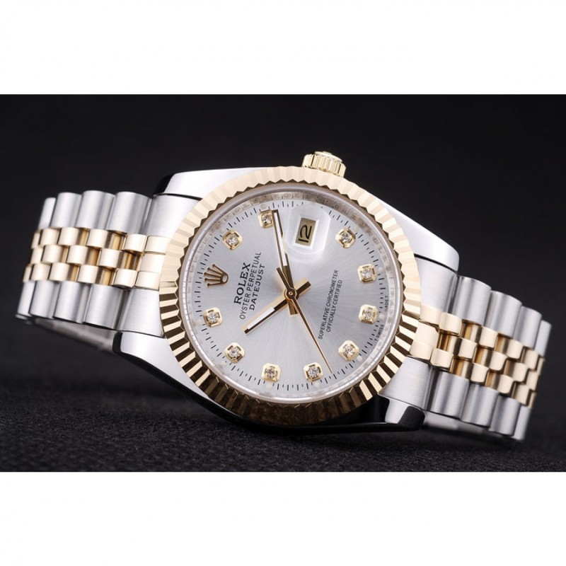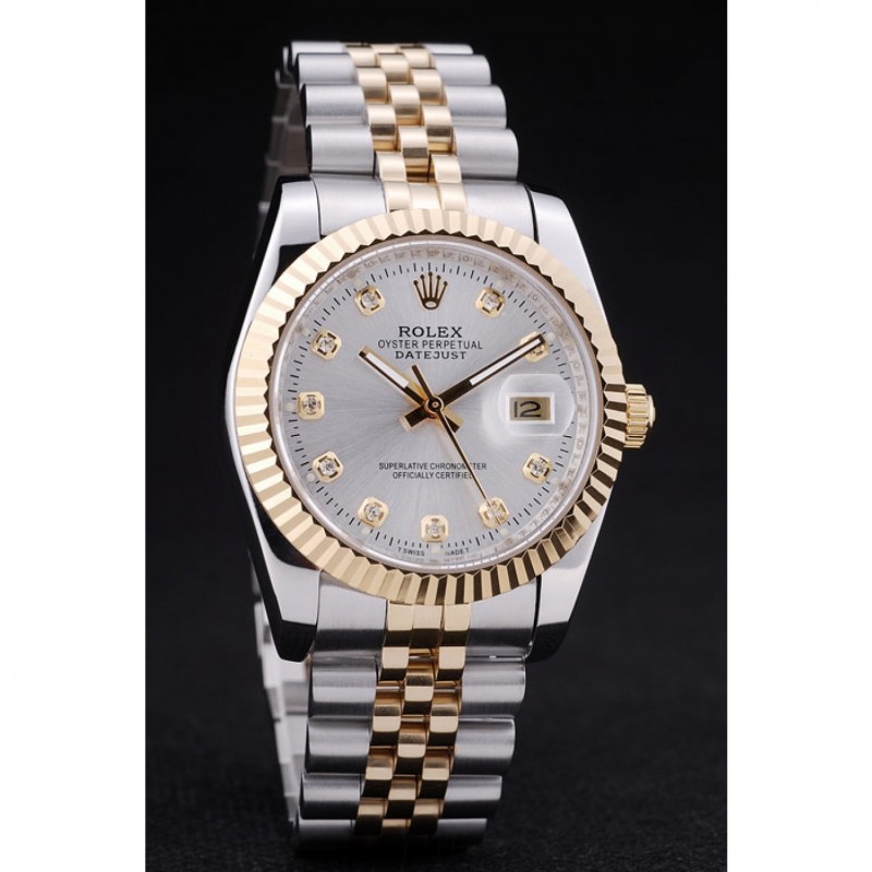 pulsera: cepillado de acero inoxidable y de eslabones de oro amarillo pulsera con Rolex logotipo de cierre oculto