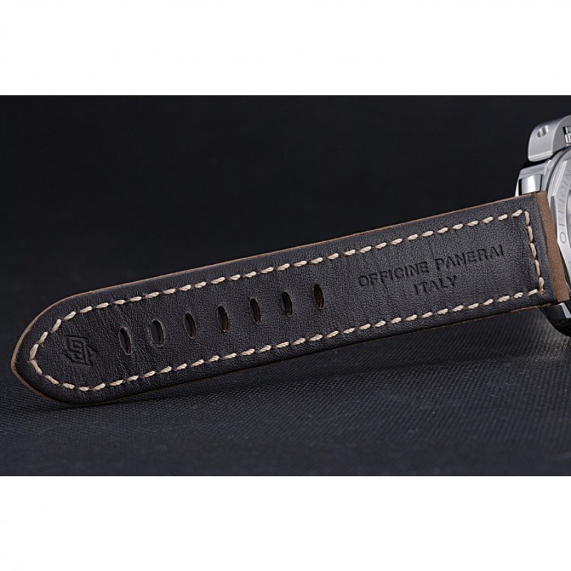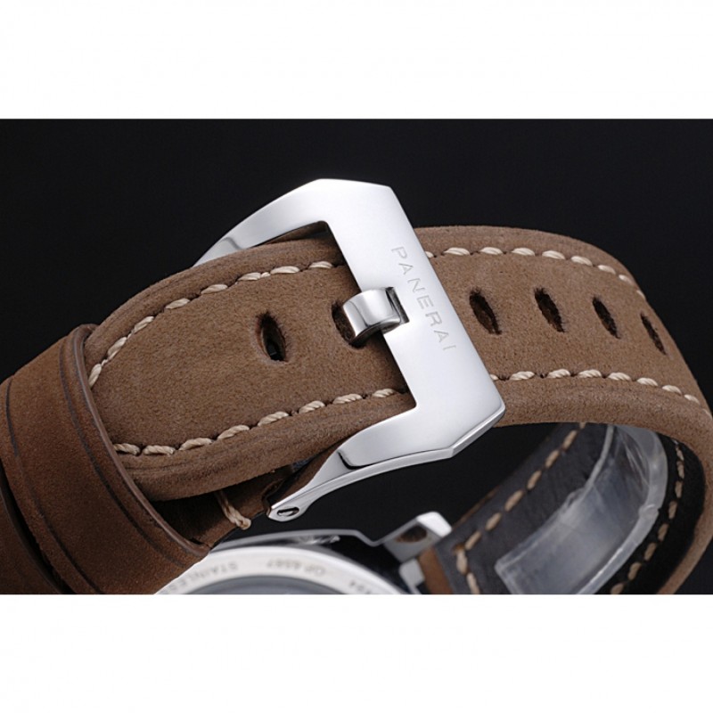 pulsera: caqui en relieve correa de cuero de gamuza Officine Panerai Italia calor con costuras de hilo blanco y Panerai grabado de acero inoxidable pulido gancho hebilla de cierre