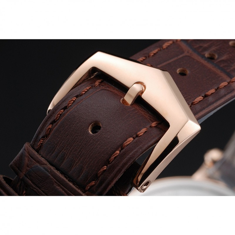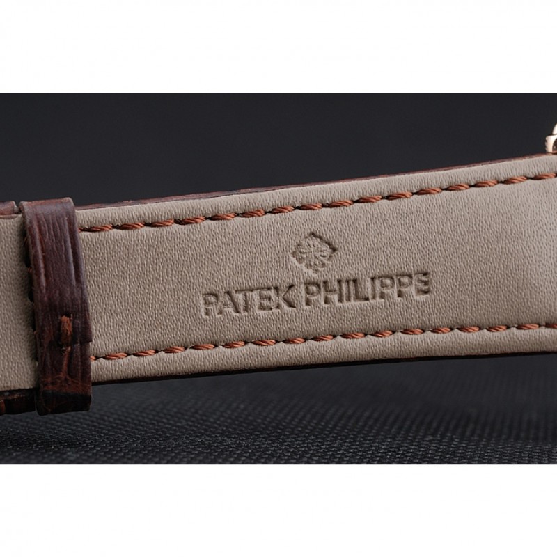 pulsera: Patek Philippe y el logo característico en relieve correa de piel de cocodrilo marrón con rosa de 18 quilates chapado en oro gancho hebilla de cierre