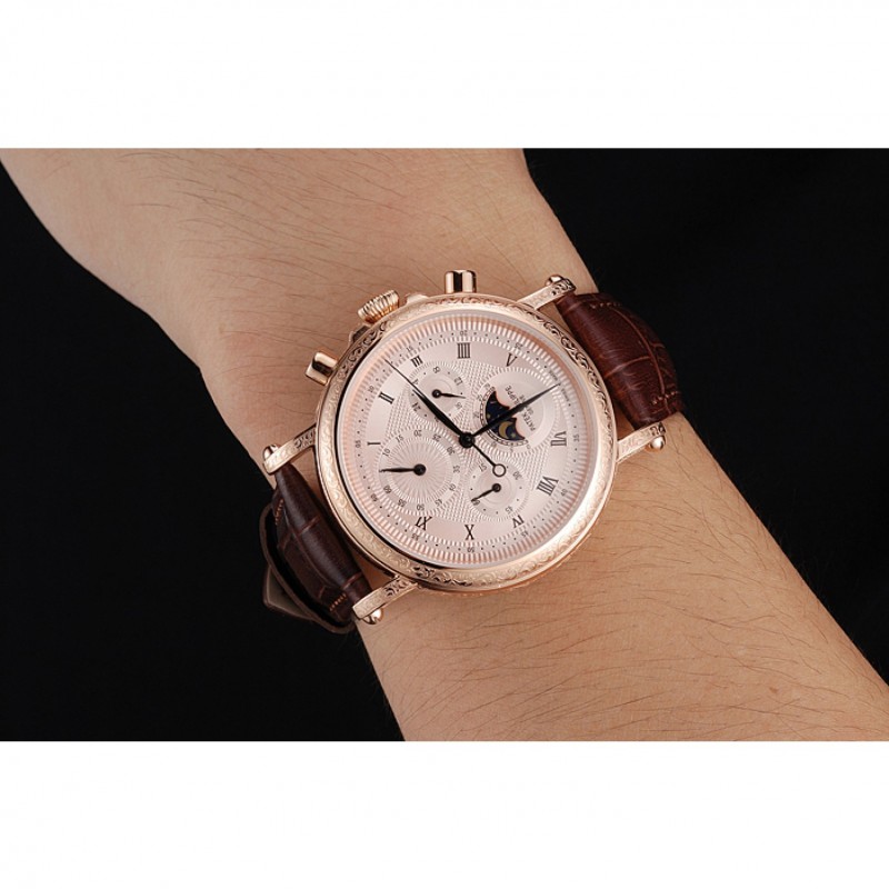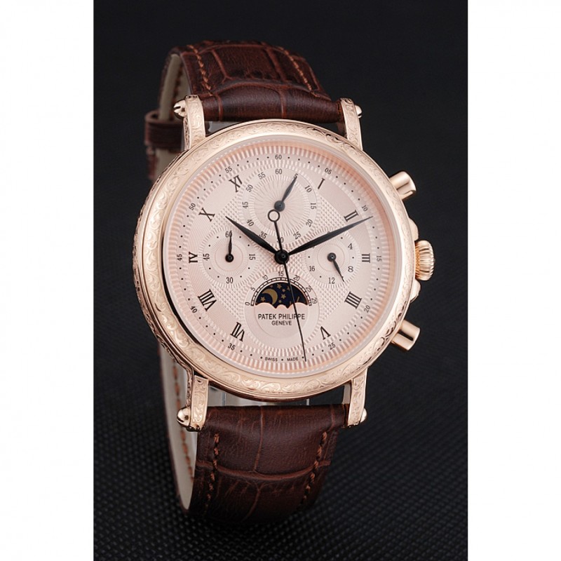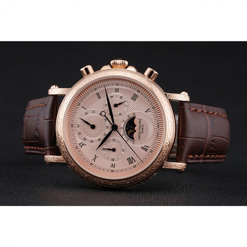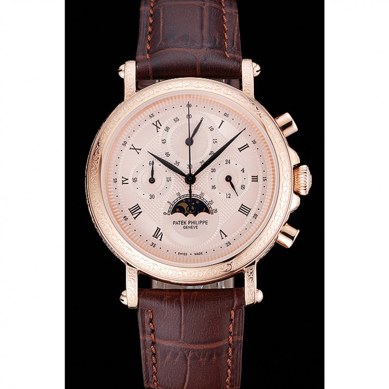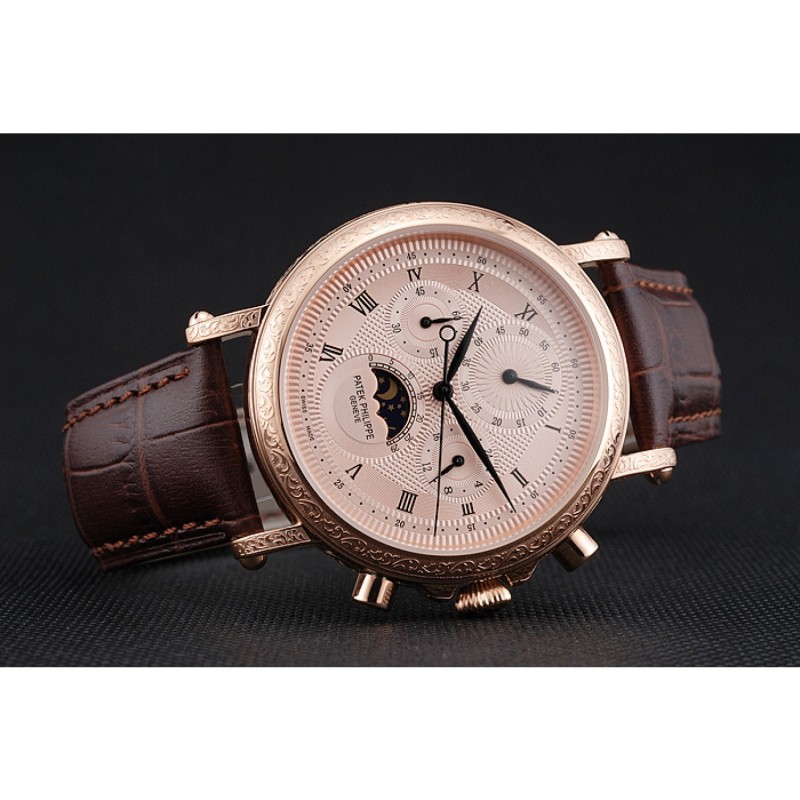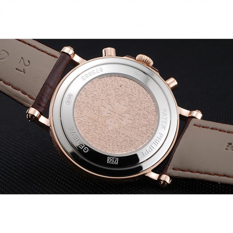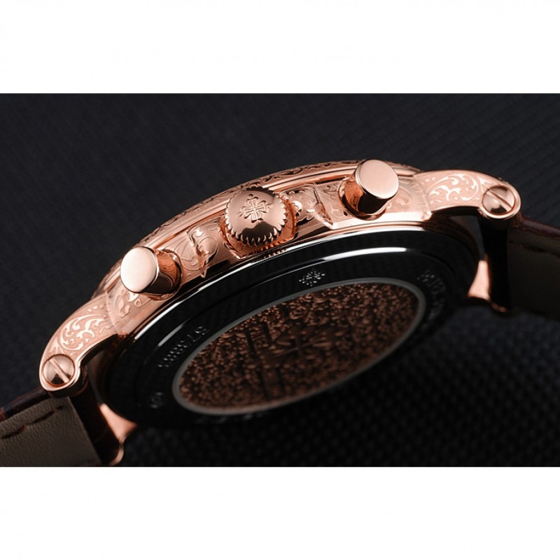 Alta calidad Réplicas Relojes Patek Philippe Grand complicaciones de oro rosa Dial Grabado Caja Oro Rosa Brown pulsera de cuero 1454142
