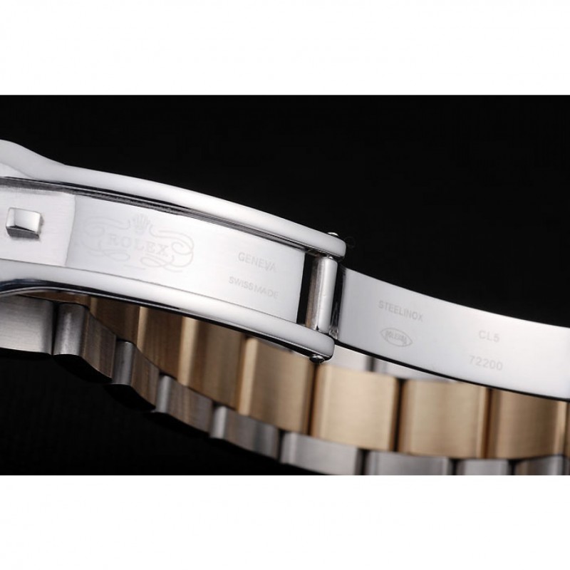 pulsera: acero inoxidable cepillado y oro rosa acoplamiento de la pulsera con el grabado Rolex en el interior de la hebilla de despliegue y un logotipo de Rolex en la parte superior