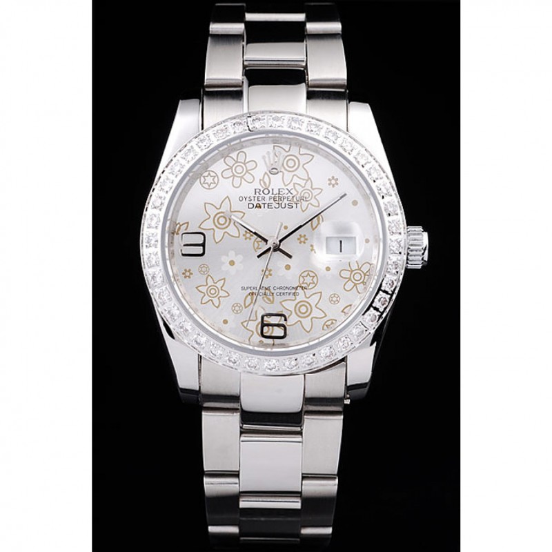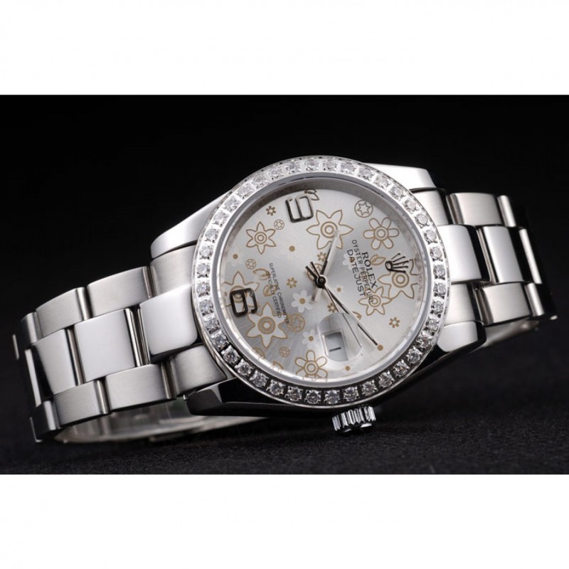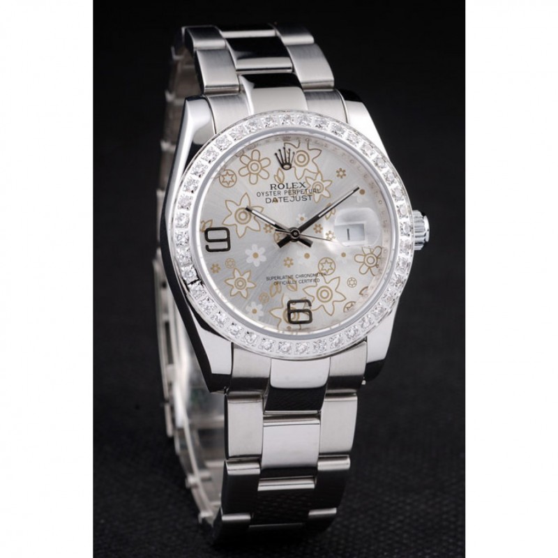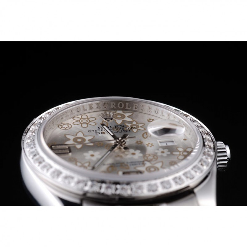Alta calidad Rolex Datejust de acero inoxidable pulido de plata Flores Dial Diamante plateado 98081