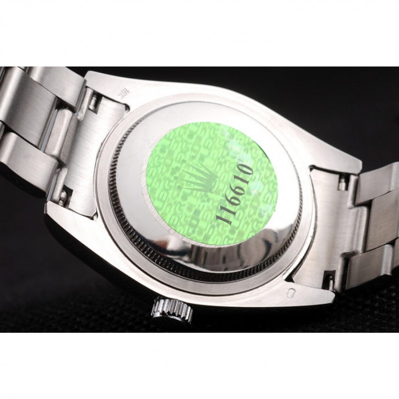 Volver: de acero inoxidable de empuje en el caso de vuelta con el logotipo verde sello Rolex