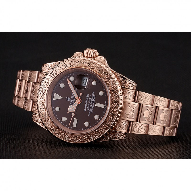 Alta calidad Suiza Rolex Submariner cráneo edición limitada esfera marrón de oro rosa y pulsera 1454087