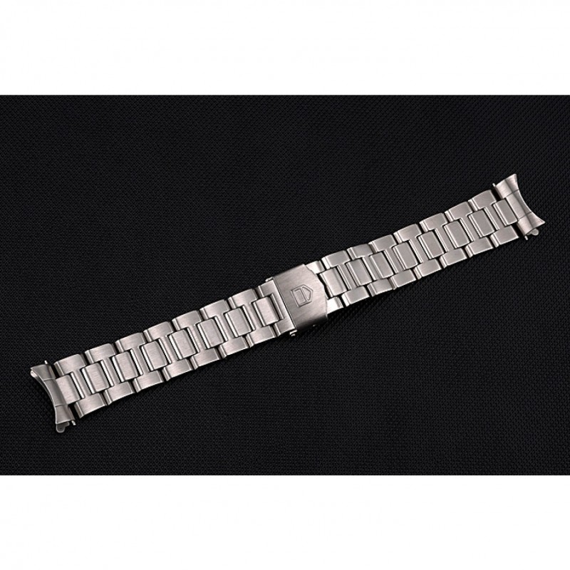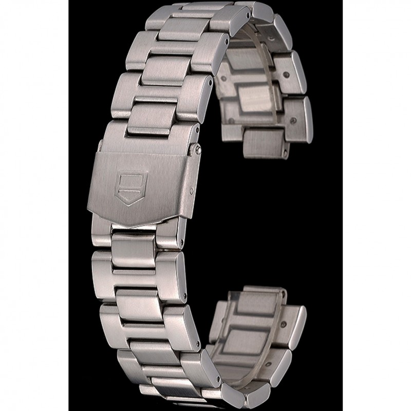 pulsera: de acero inoxidable cepillado pulsera de enlace con la etiqueta logotipo Heuer grabado cierre plegable