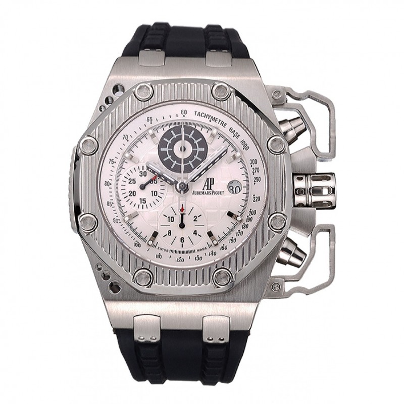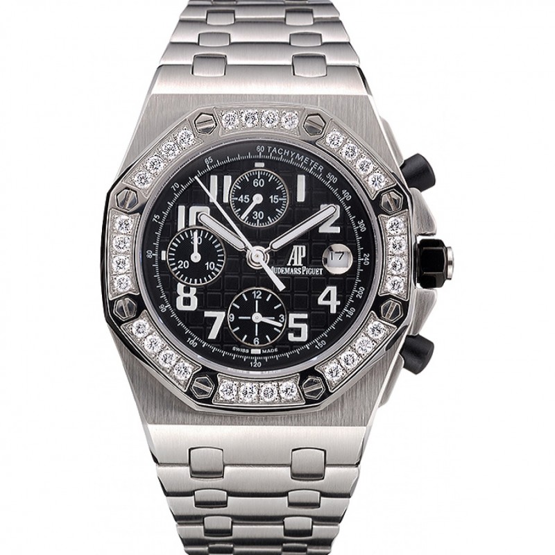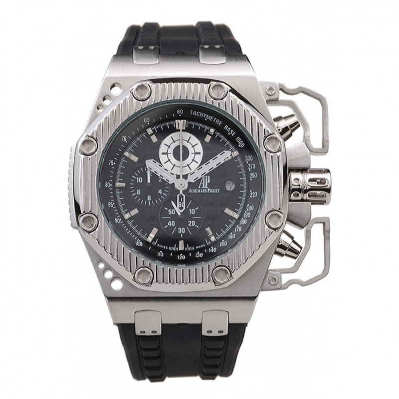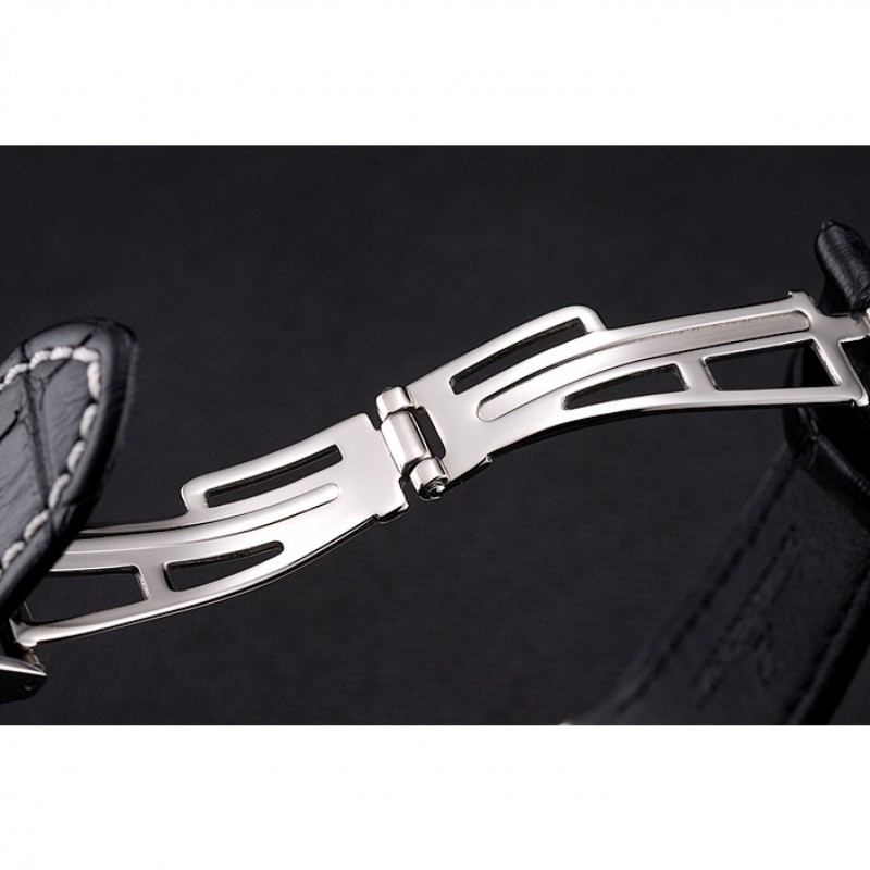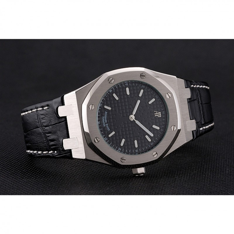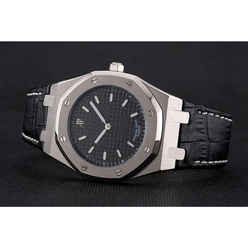 pulsera: logo y Audemars Piguet calor correa de piel de cocodrilo negro en relieve con la costura de hilo blanco y Audemars Piguet grabado de acero inoxidable pulido plegable en cierre de broche de gancho