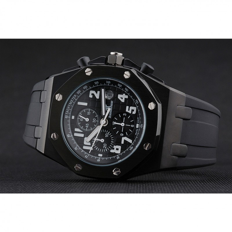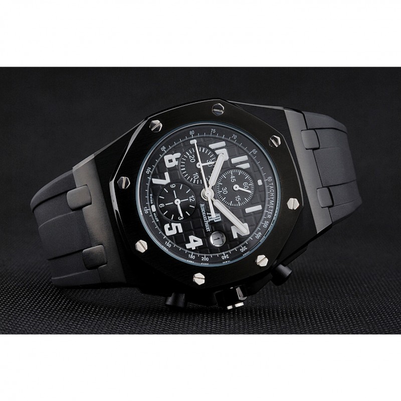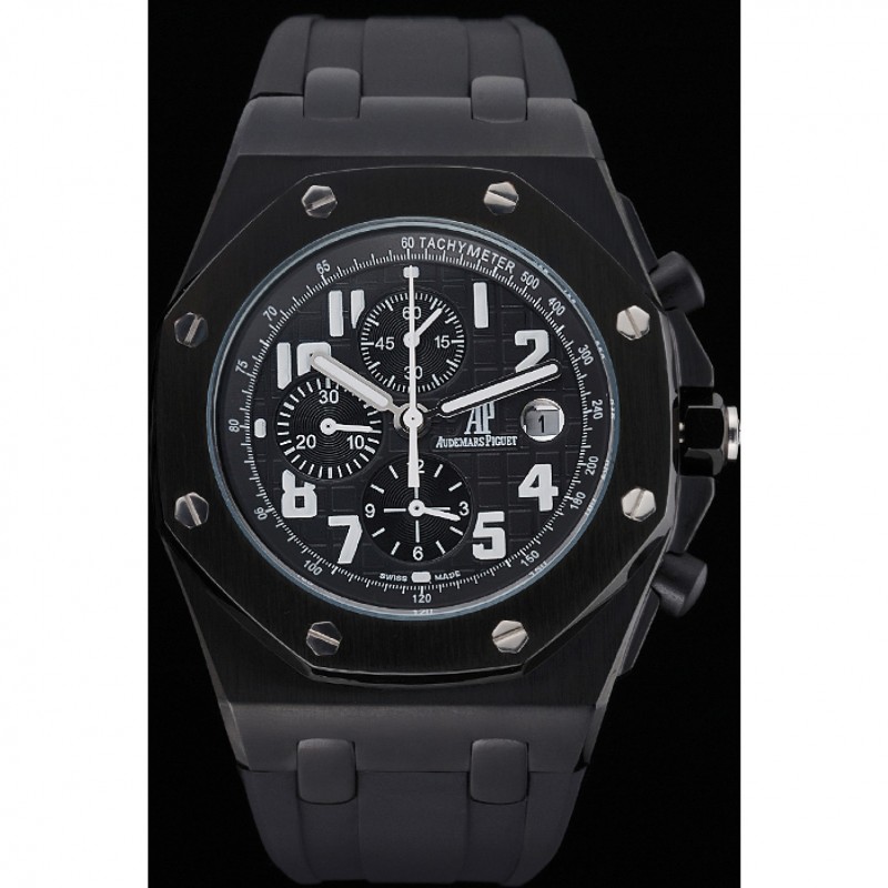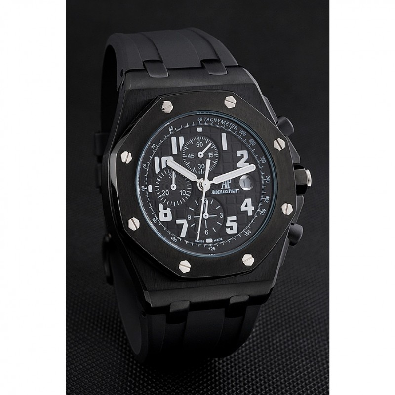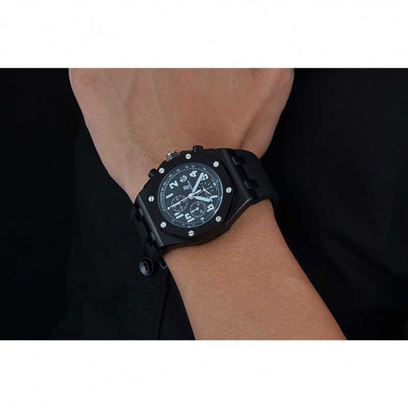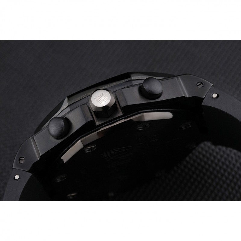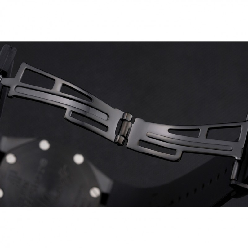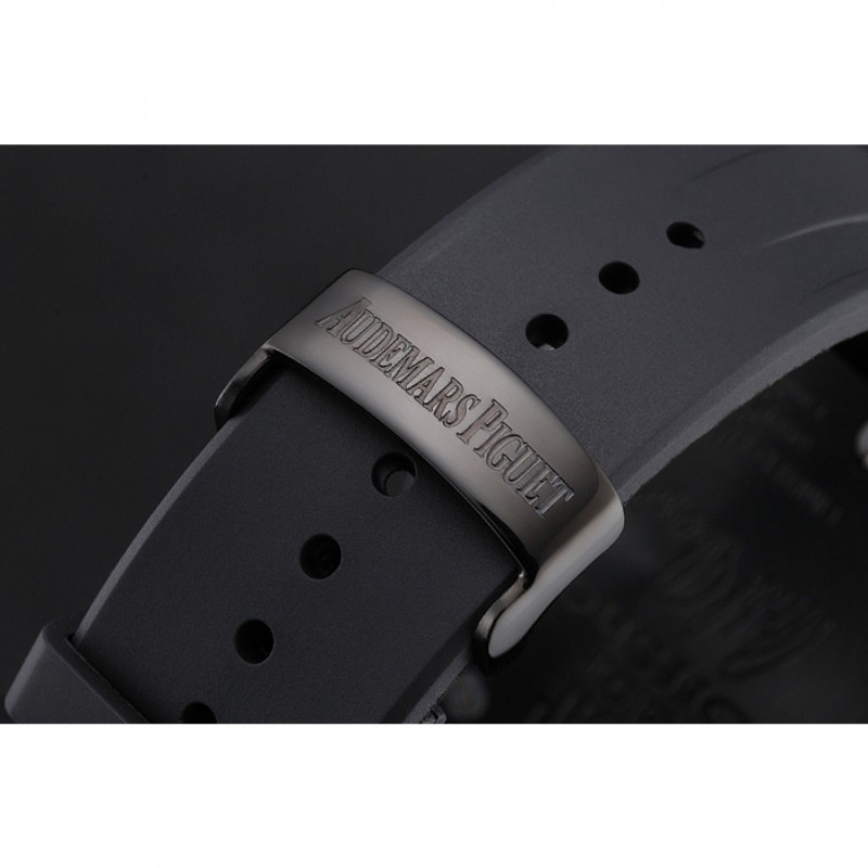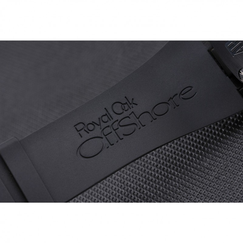 pulsera: correa de caucho Negro con relieve nombre de Audemars Piguet y el logotipo y un Audemars Piguet inscrito flip-sobre el corchete