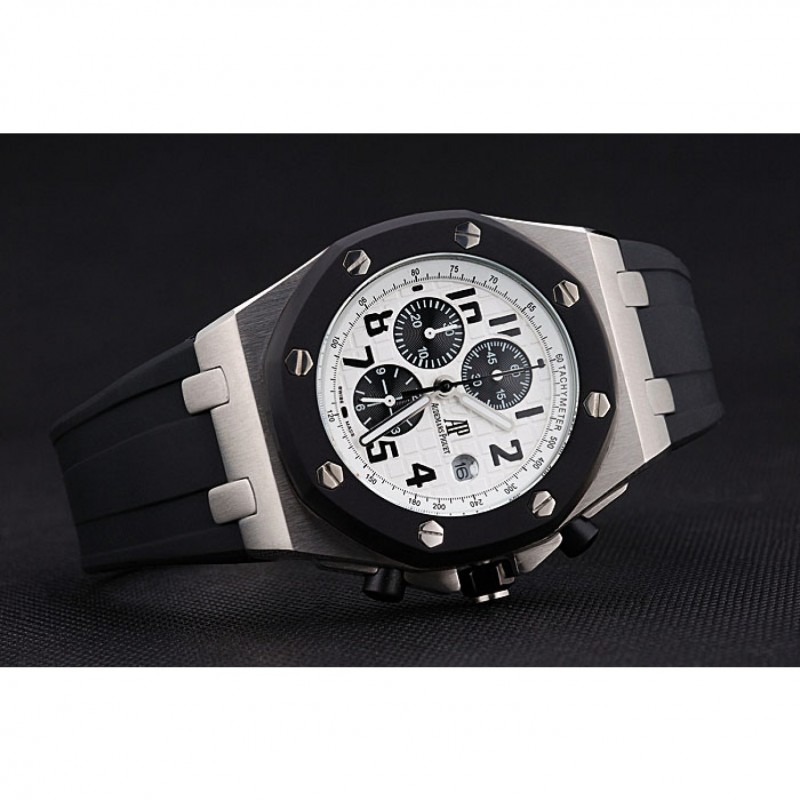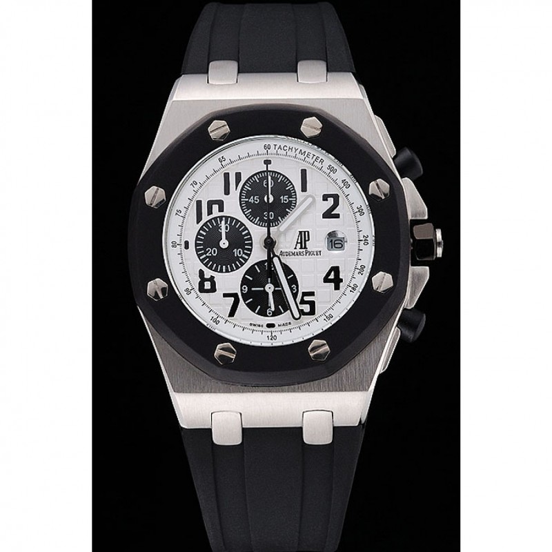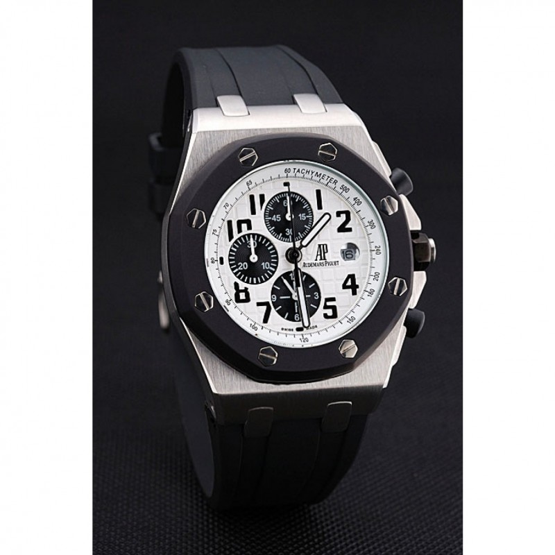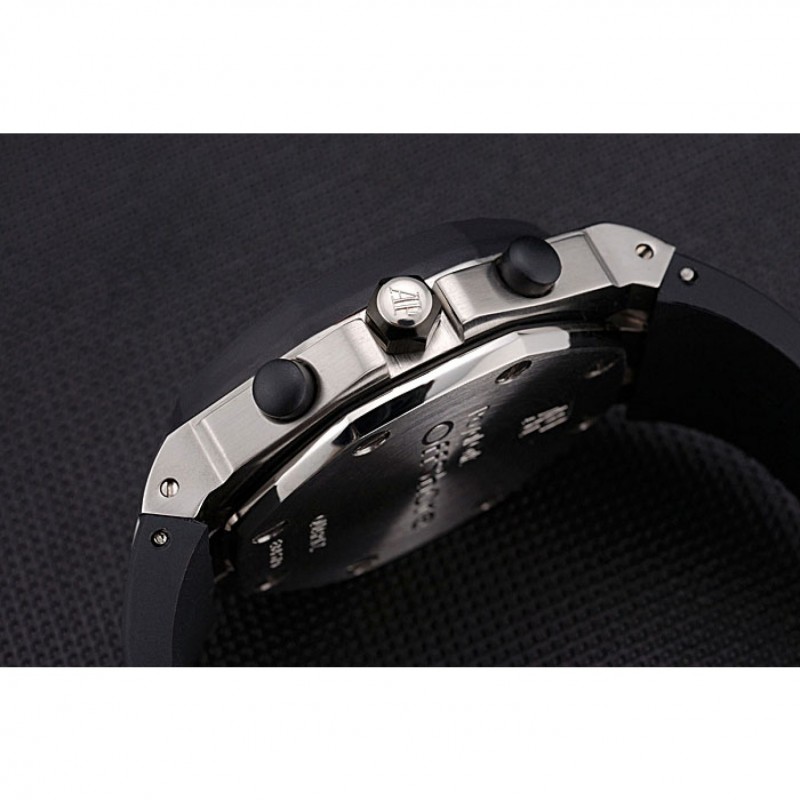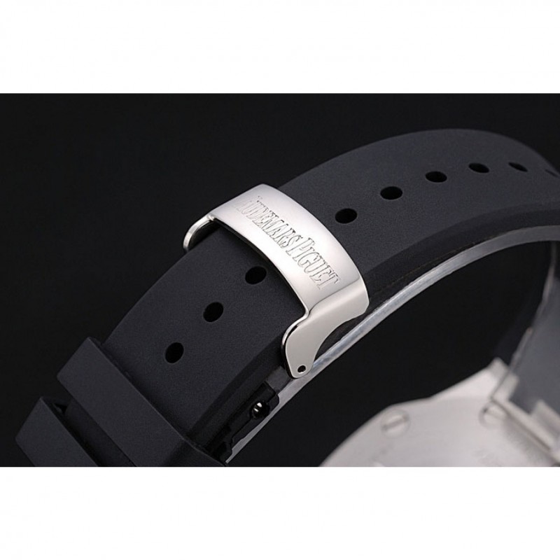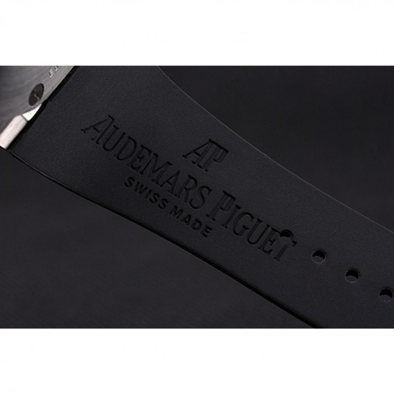 pulsera: Audemars Piguet Royal Oak offshore en relieve correa de caucho negro con Audemars Piguet grabado de acero inoxidable cepillado plegable en el corchete