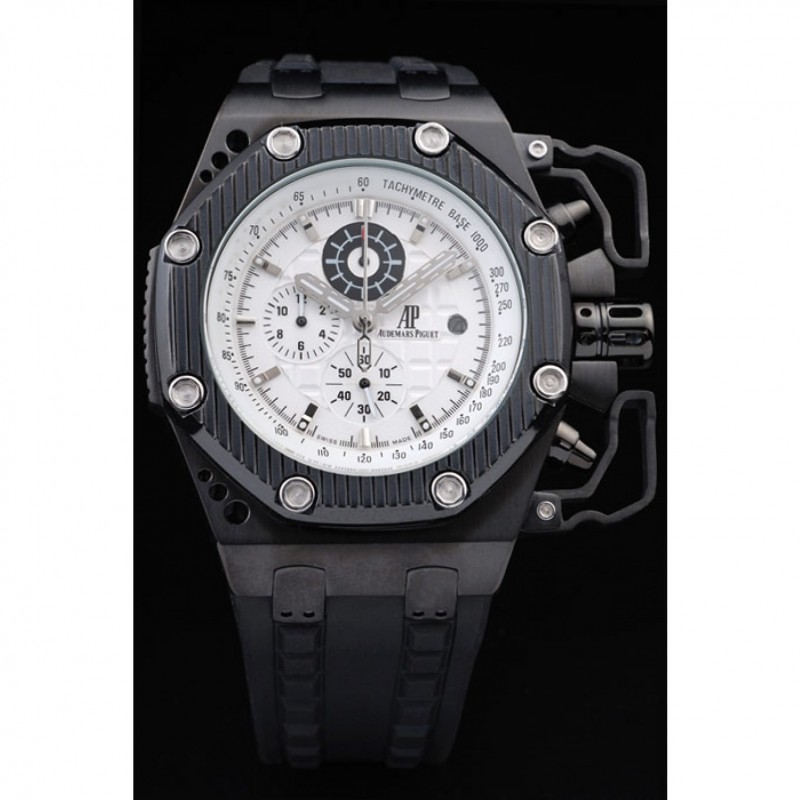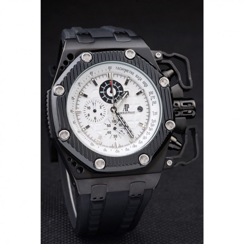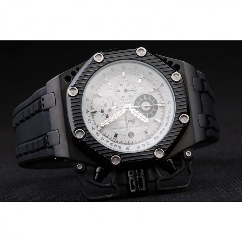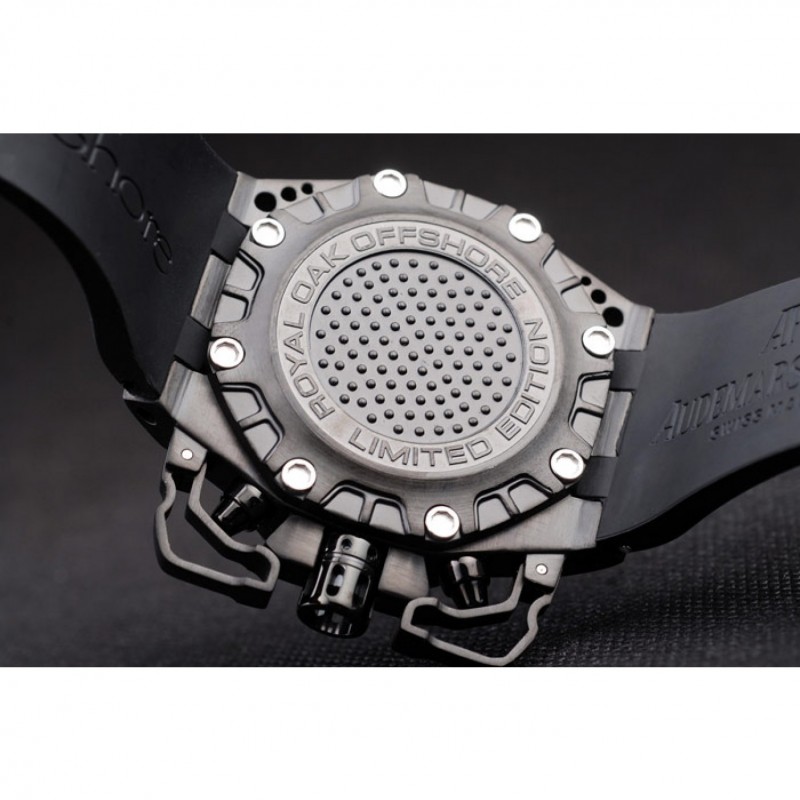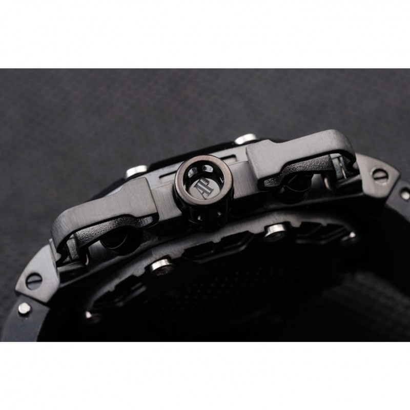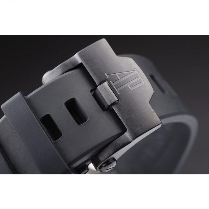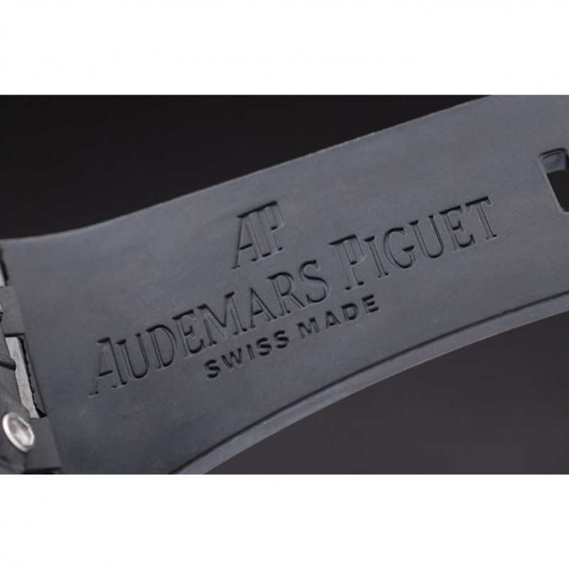 pulsera: Audemars Piguet Royal Oak offshore en relieve correa de caucho negro con Audemars Piguet grabado ion-plateado plegable en corchete