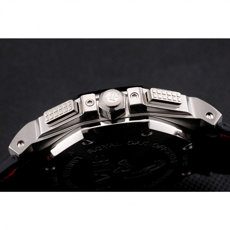 Corona: logo Audemars Piguet grabado pulido corona cutwork de acero inoxidable con pared de protección y un pulsador rectangular corona en cada lado de ella