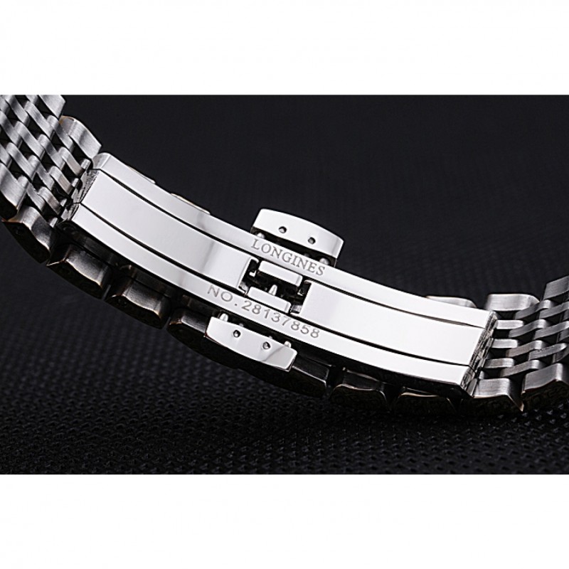 pulsera: 18k oro amarillo plateado y pulido brazalete de acero inoxidable vínculo con Longines y el logotipo grabado de liberación empuje cierre oculto