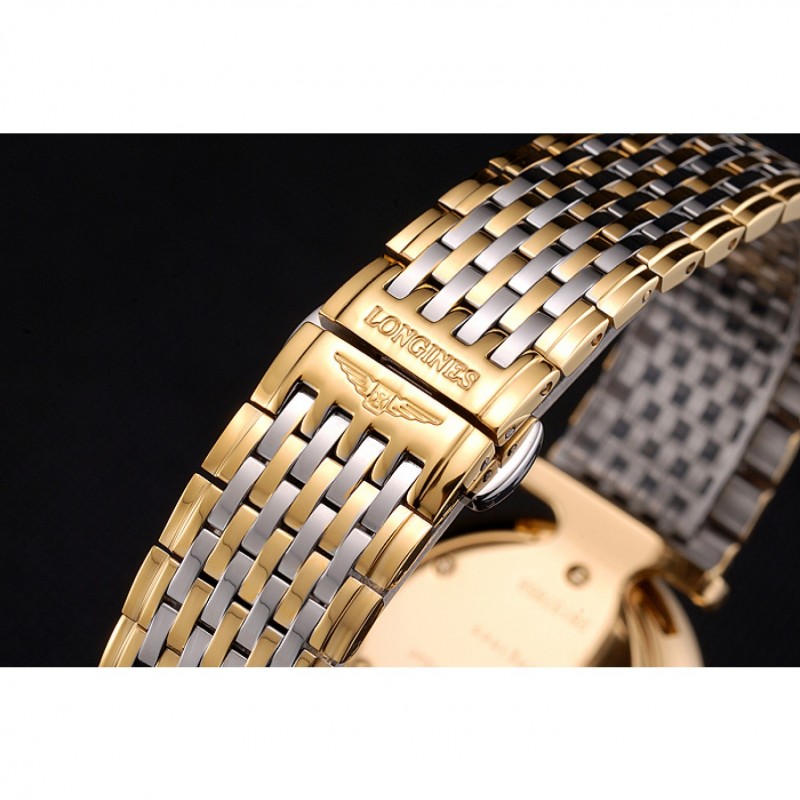 pulsera: 18k oro amarillo plateado y pulido brazalete de acero inoxidable vínculo con Longines y el logotipo grabado de liberación empuje cierre oculto