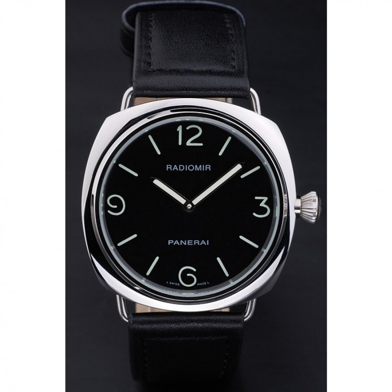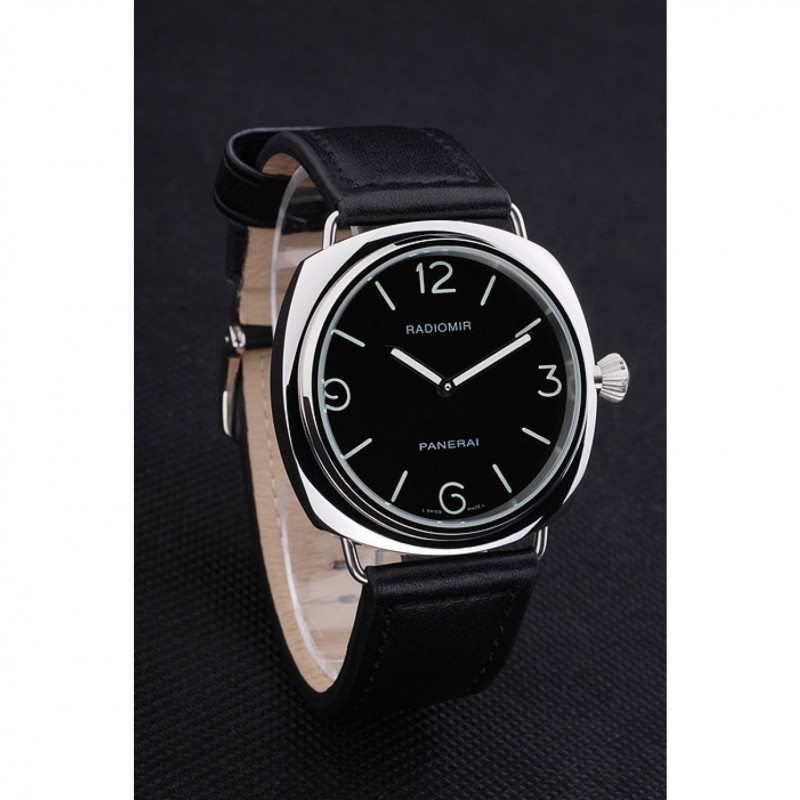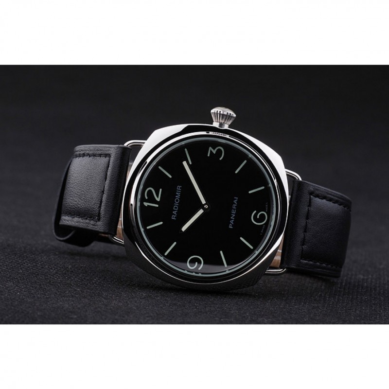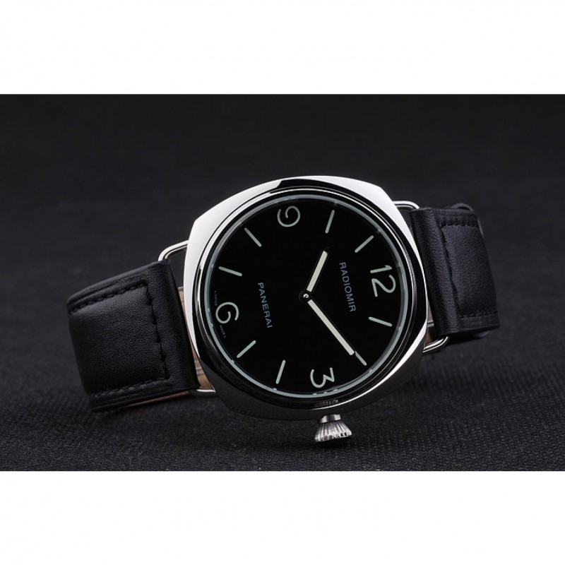 Barato Panerai Negro Dial pulsera de cuero Negro