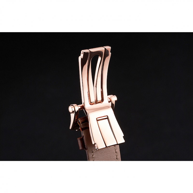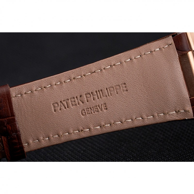 pulsera: correa de piel de cocodrilo marrón en relieve calor Patek Philippe Geneve con Nautilus grabado 18K rose-chapado en oro hebilla de cierre