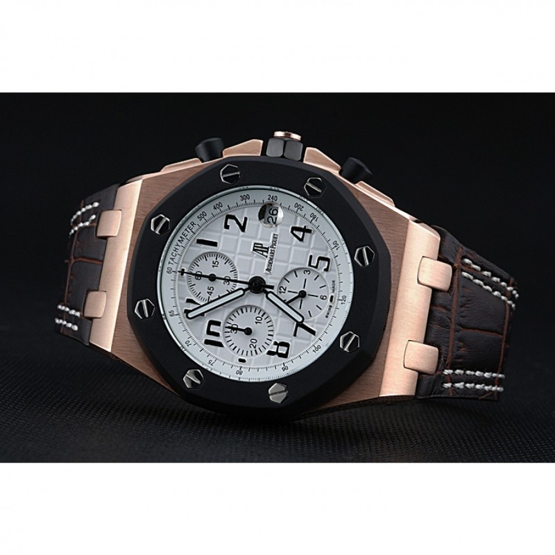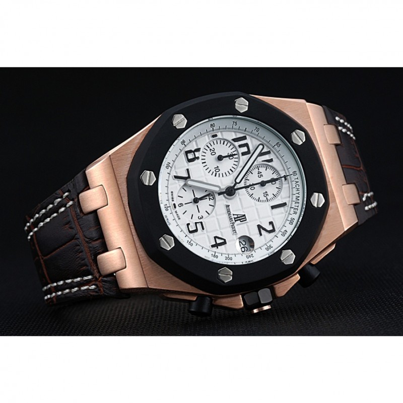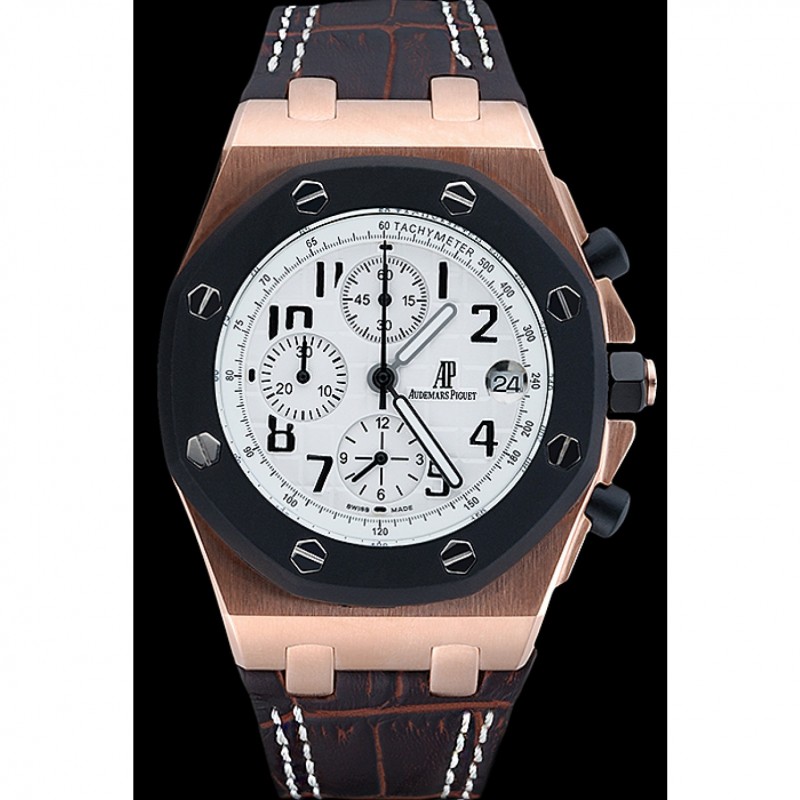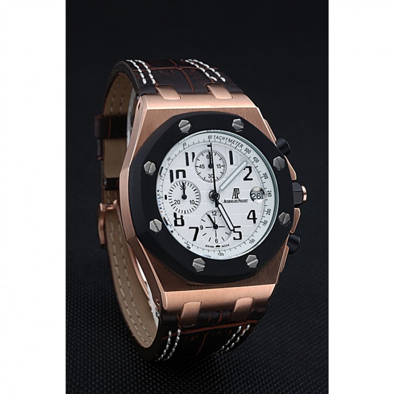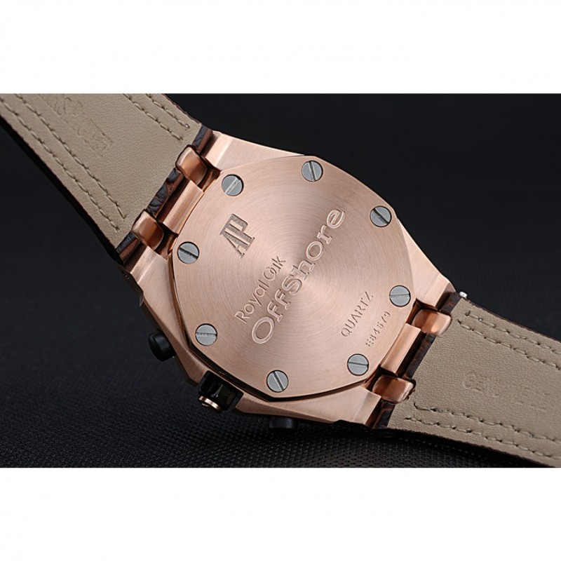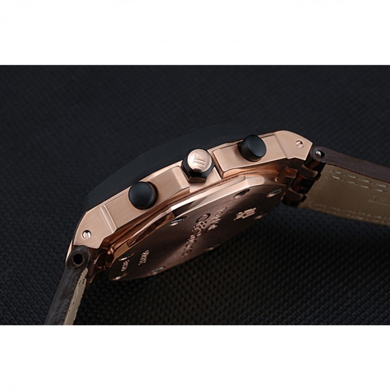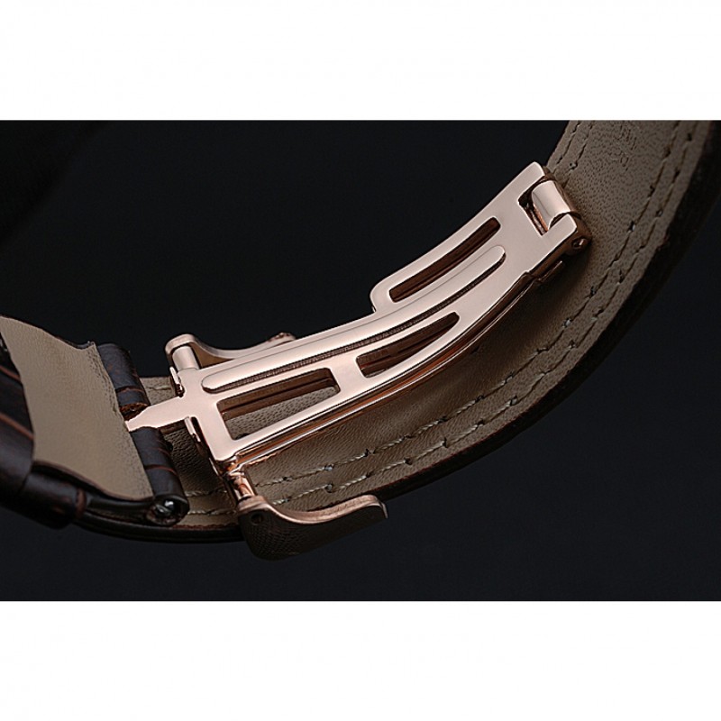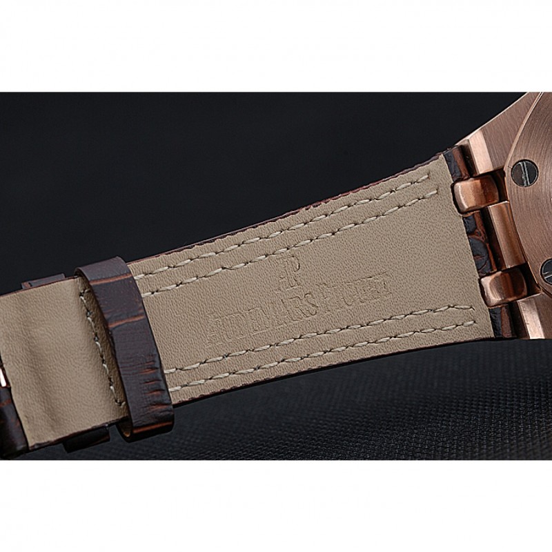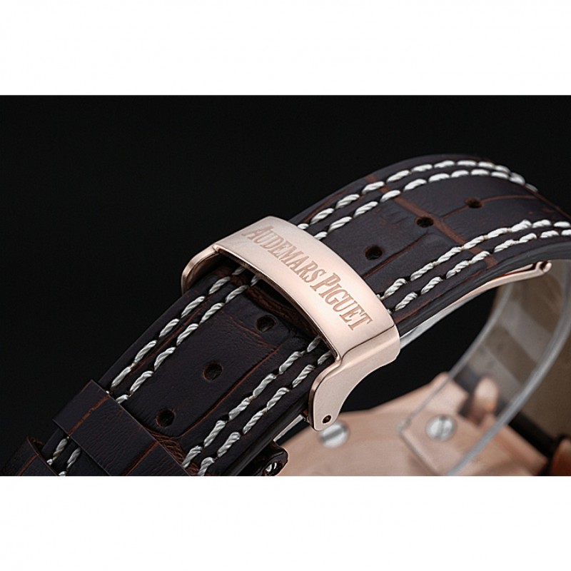 pulsera: Heat en relieve correa de piel de cocodrilo marrón oscuro Audemars Piguet con la costura doble blanco y Audemars Piguet grabado Rose-chapado en oro plegable en corchete