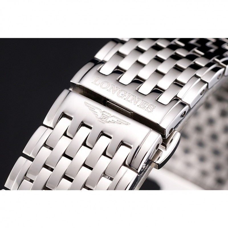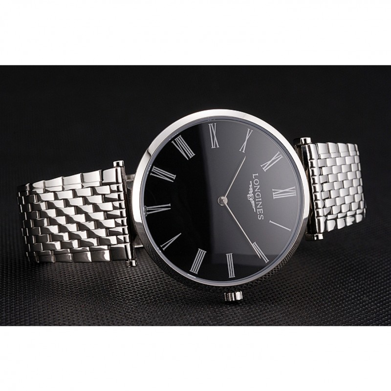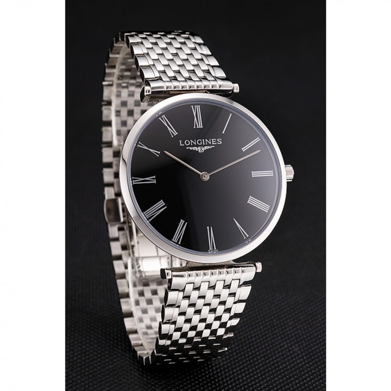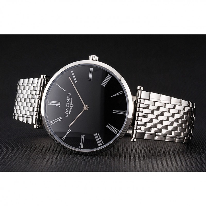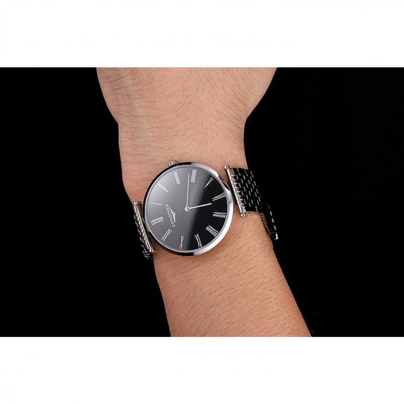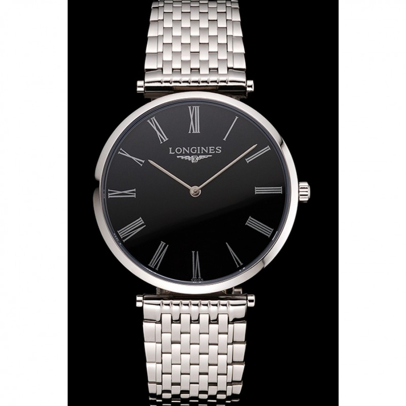 Barato Réplicas Relojes Suiza Longines Grande Classique Negro Dial Caja de acero inoxidable de los números romanos y pulsera