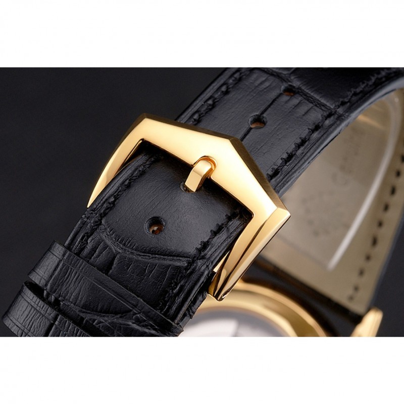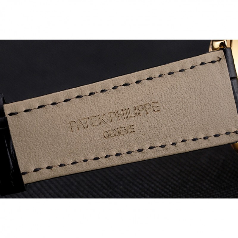 pulsera: correa de piel de cocodrilo negro en relieve de calor Patek Philippe Geneve 18 quilates en oro amarillo plateado gancho hebilla de cierre