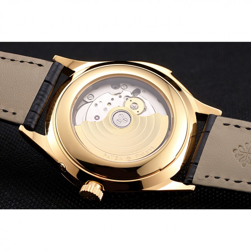 Volver: 18k oro amarillo transparentes mecánicos-revelando atrás con Patek Philippe y el logotipo grabado