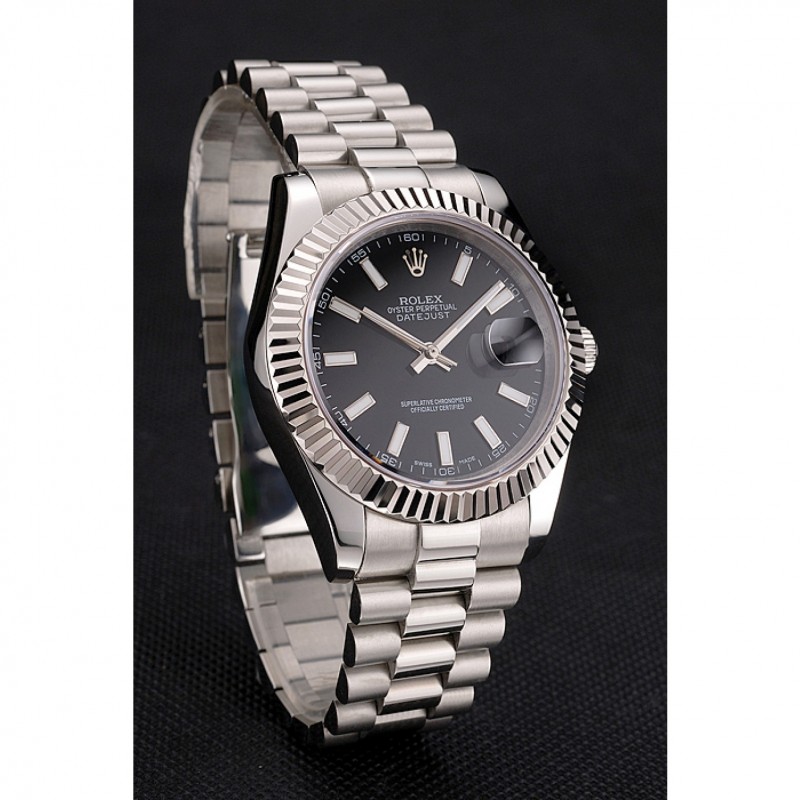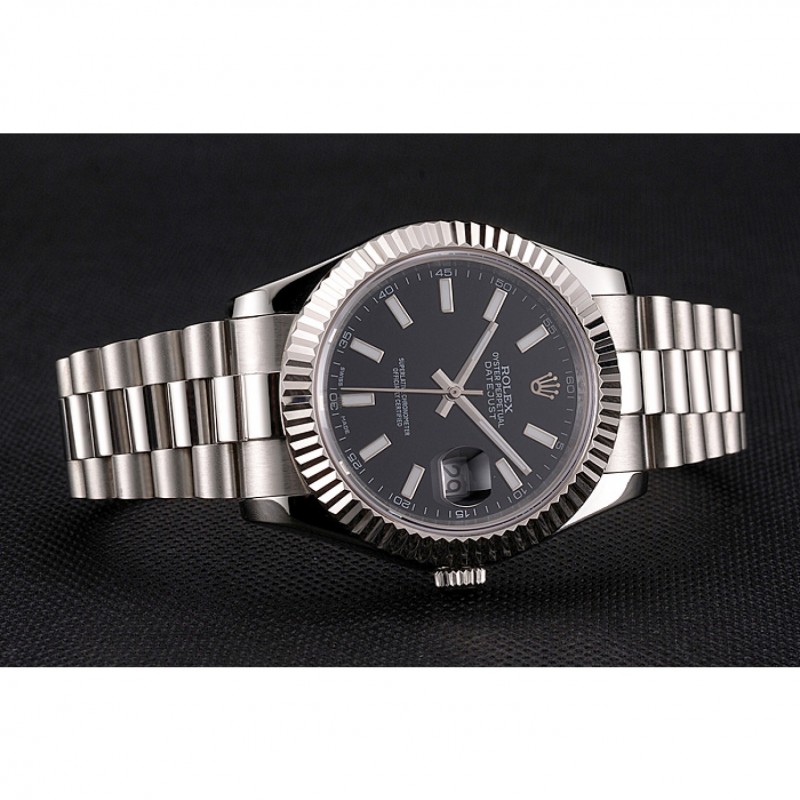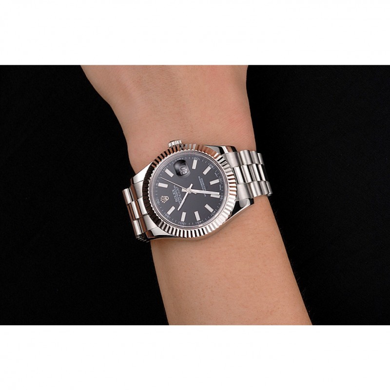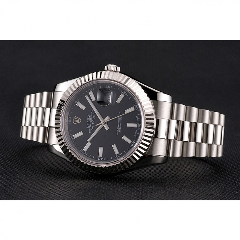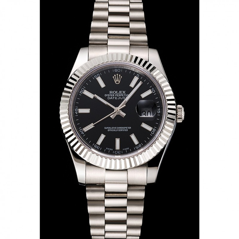Barato Rolex Datejust Negro Dial Caja de acero inoxidable y pulsera