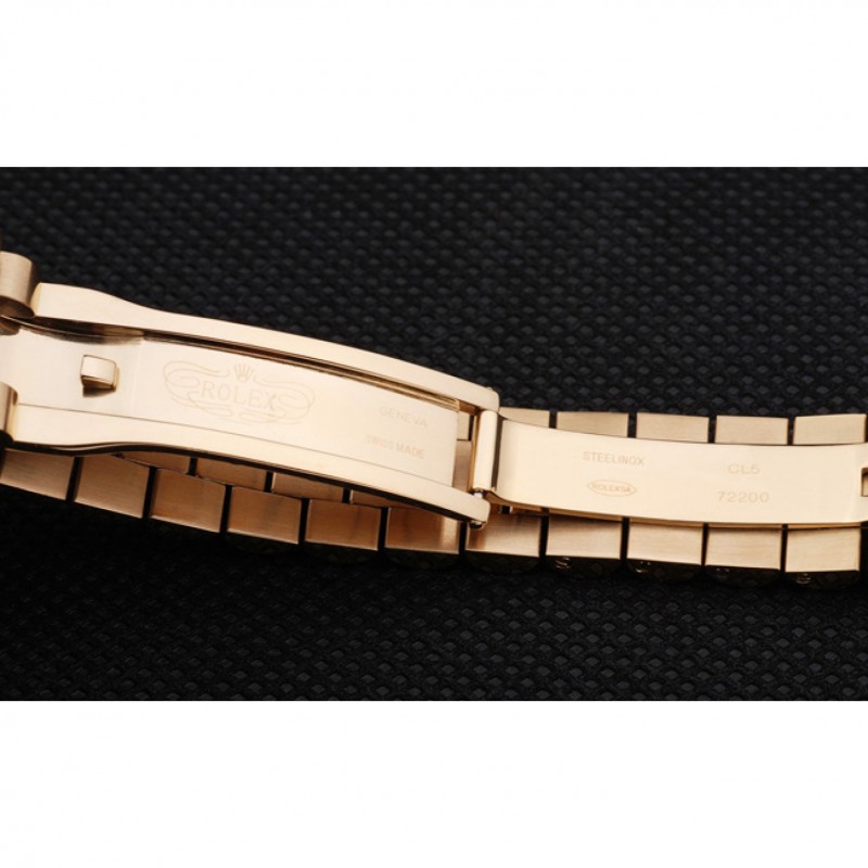 pulsera: 18k oro amarillo plateado brazalete de eslabones de acero inoxidable con grabado Rolex cierre oculto que muestra el logotipo de Rolex