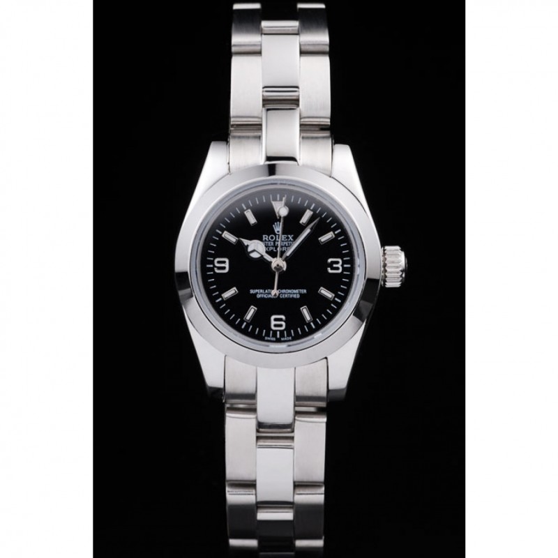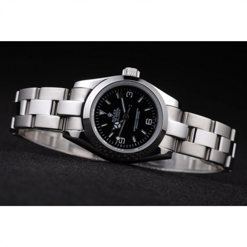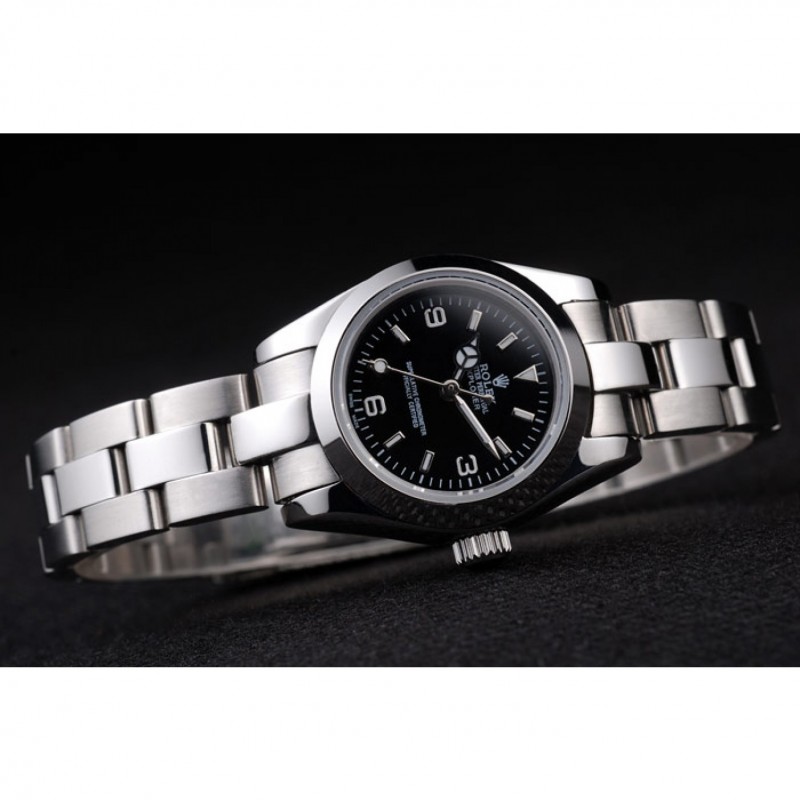 Barato Rolex Explorador de acero inoxidable pulido Dial Negro 98089
