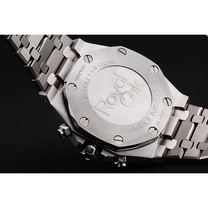 Volver: Leo Messi Royal Oak Edición limitada de acero inoxidable cepillado grabado atornillado posterior