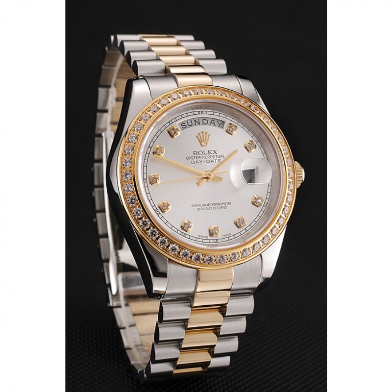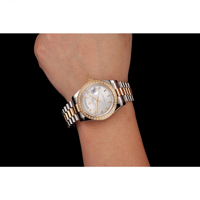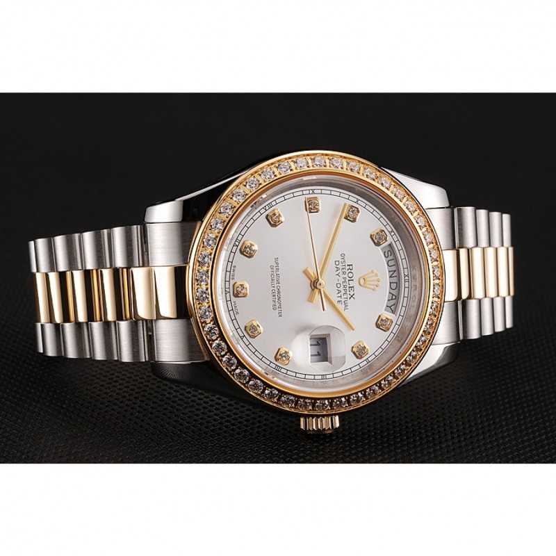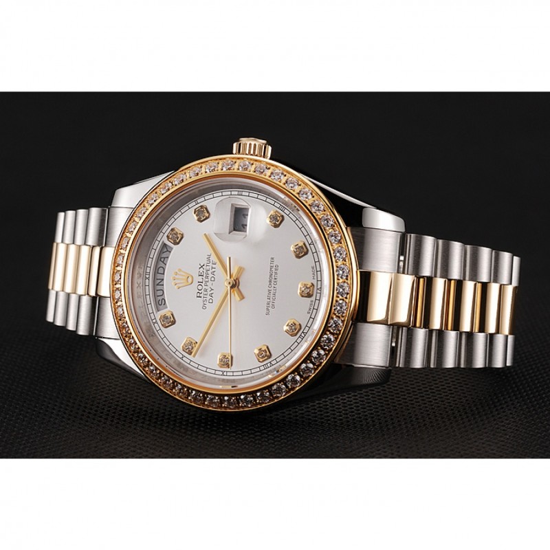 Barato Suiza Rolex Day-Date Esfera Blanca, la caja del diamante del oro de dos tonos pulsera de acero inoxidable 1453971