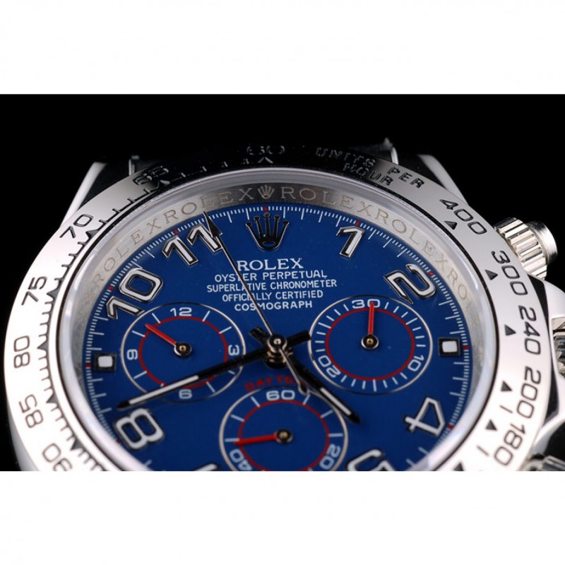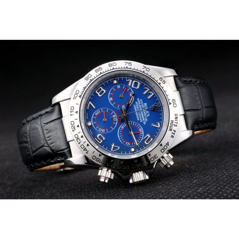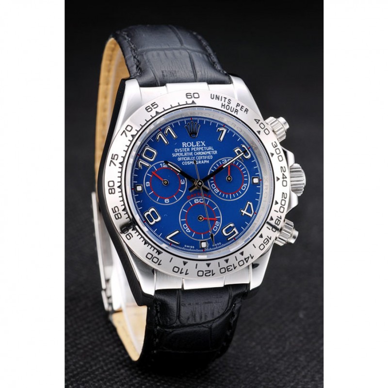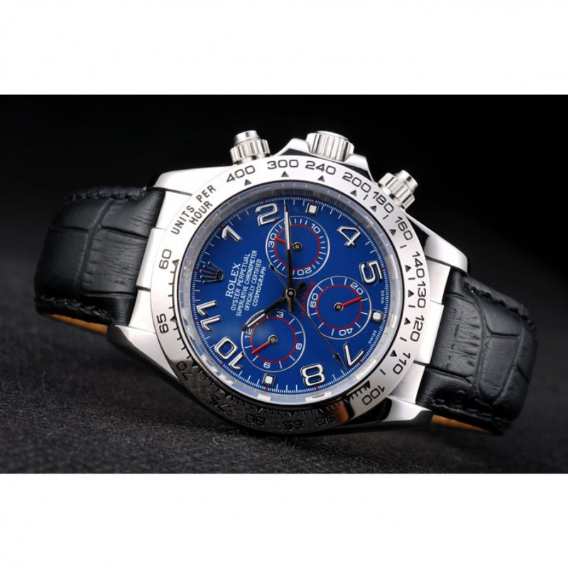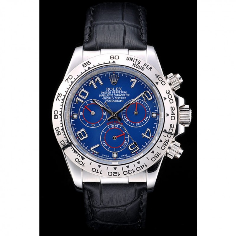 Caja de acero inoxidable Rolex Daytona Azul Dial correa de cuero Negro