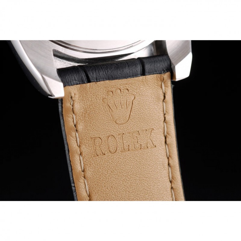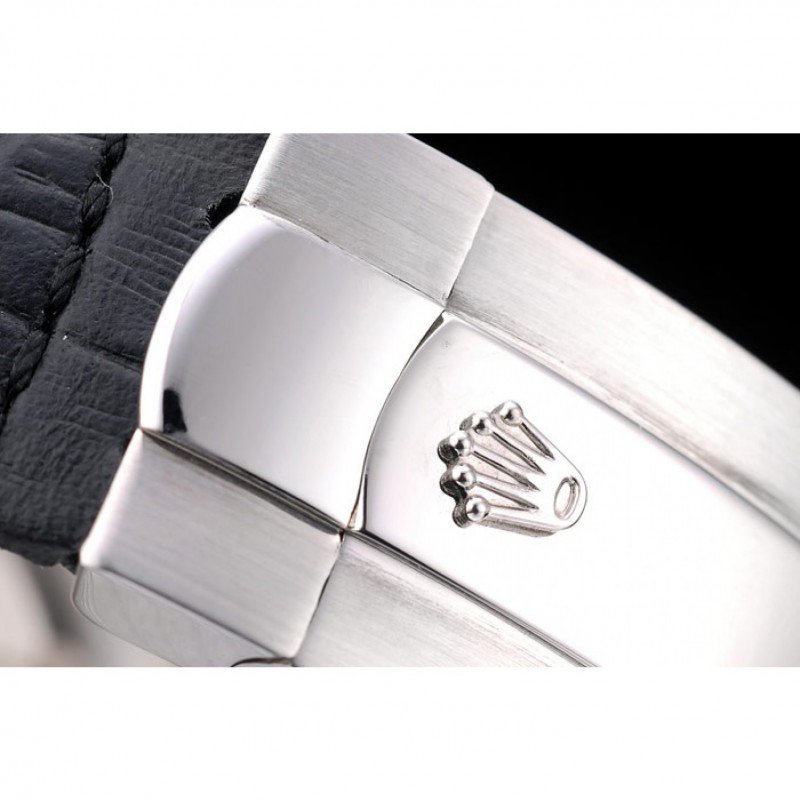 pulsera: correa de piel de cocodrilo negro en relieve de calor Rolex con grabado cierre desplegable de acero inoxidable con el logotipo de Rolex en la parte superior