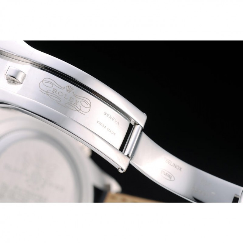 Crown: pulido corona calado de acero inoxidable con el logotipo de Rolex y dos botones coronas cutwork empuje más pequeños a cada lado de la misma