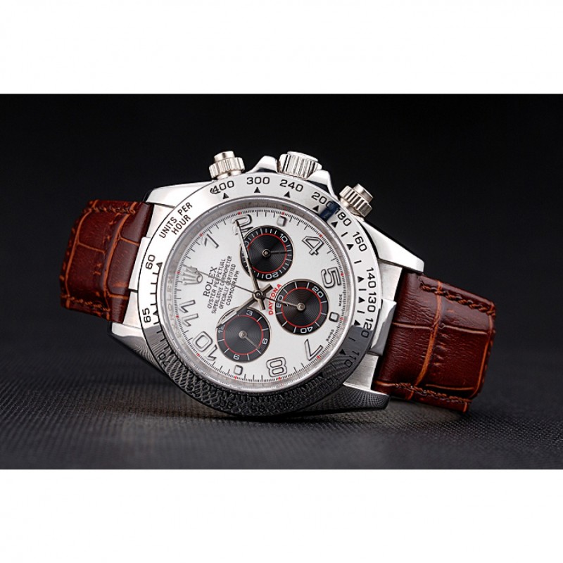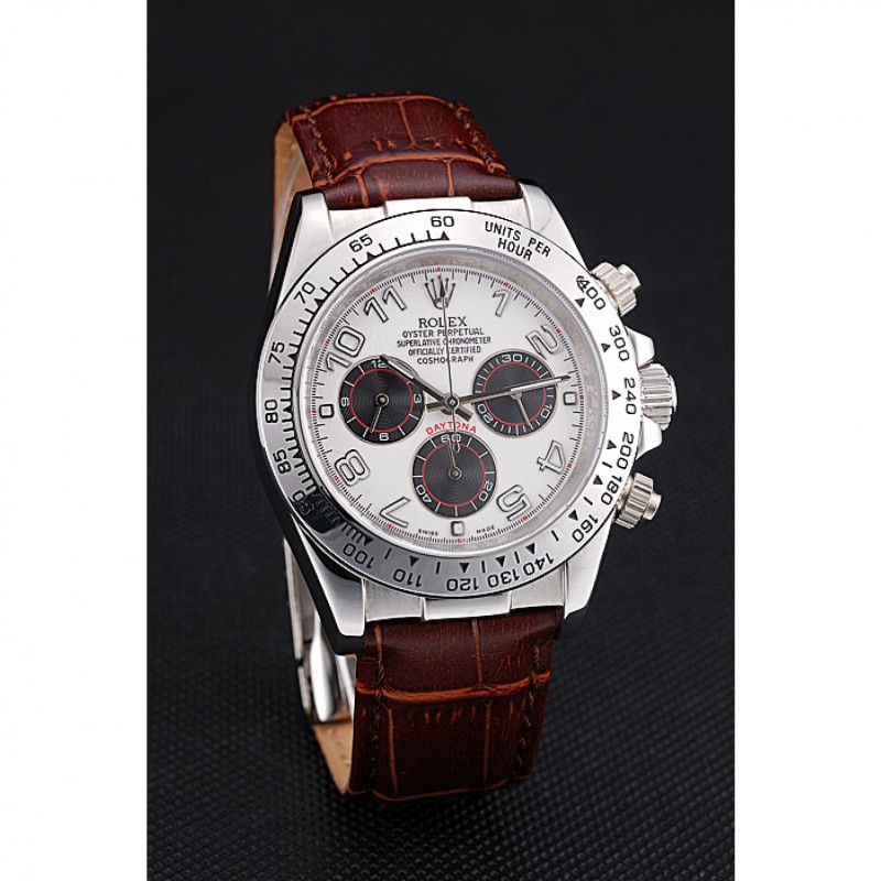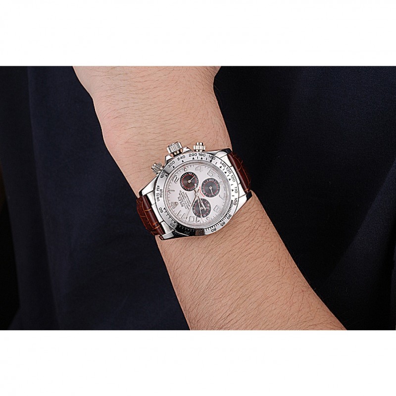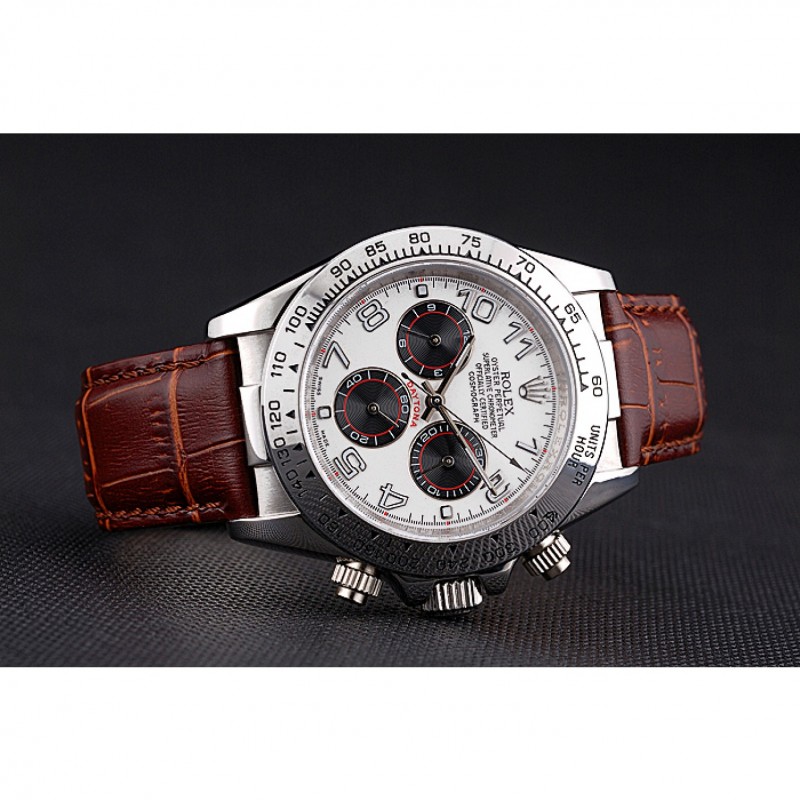 Caja de acero inoxidable Rolex Daytona esfera blanca correa de cuero de Brown