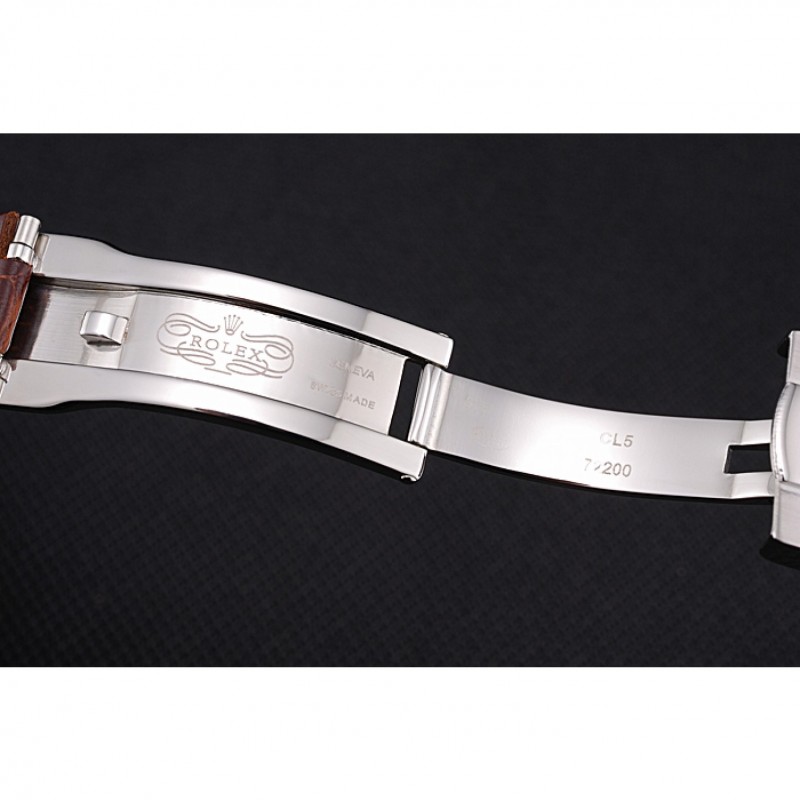 pulsera: correa de piel de cocodrilo marrón en relieve de calor Rolex con grabado cierre desplegable de acero inoxidable con el logotipo de Rolex en la parte superior