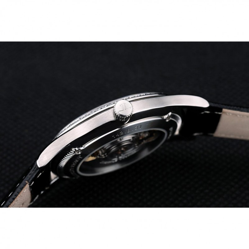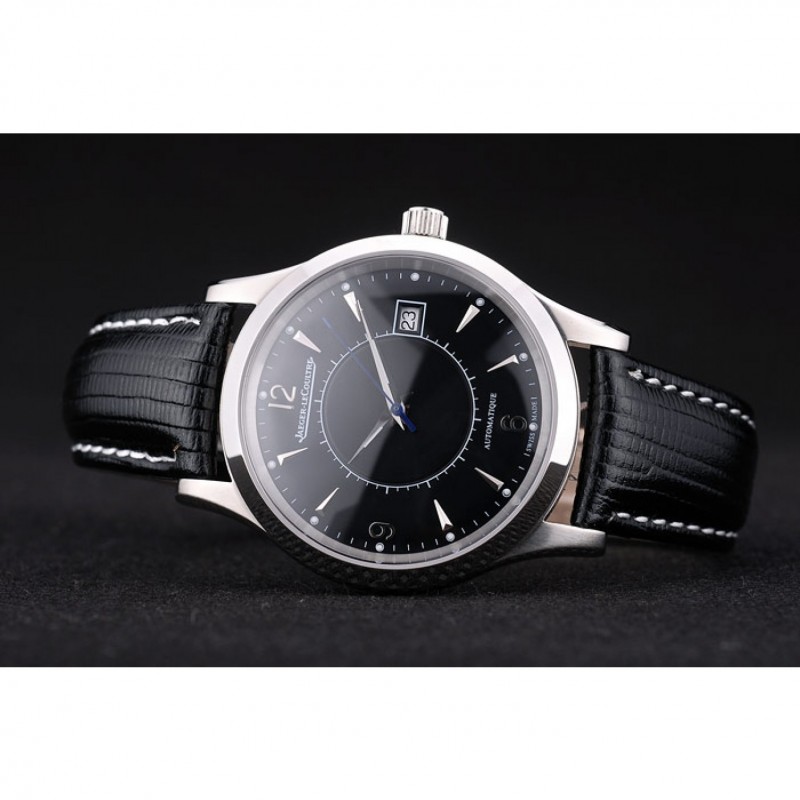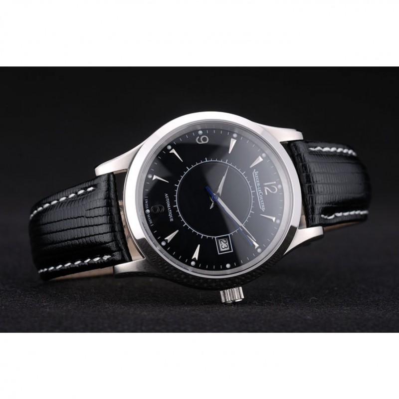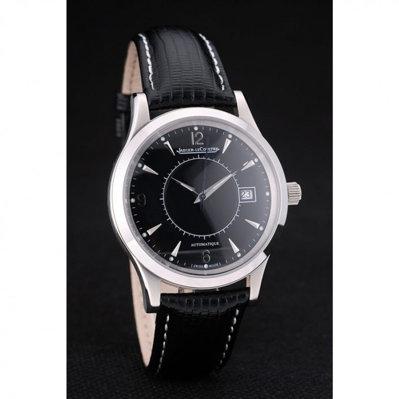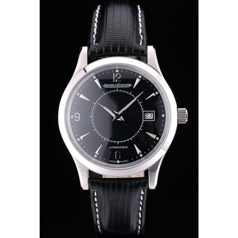 Correa de cuero Jaeger Le Coultre de control maestro suizo de acero inoxidable Bisel Negro 7593