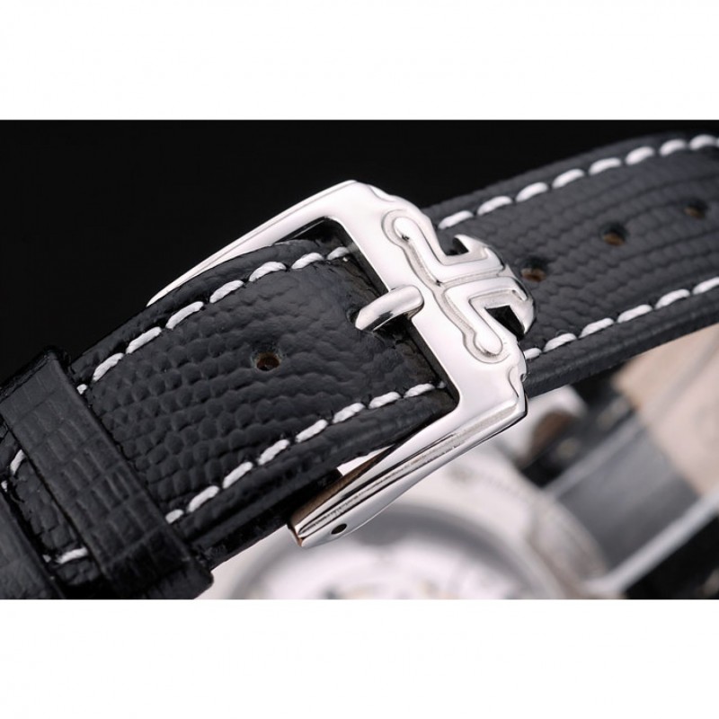 pulsera: logotipo y correa de cuero Jaeger-Le Coultre de calor en relieve de piel de serpiente negro con costuras de hilo blanco y pulido logotipo de acero inoxidable corte gancho hebilla de cierre