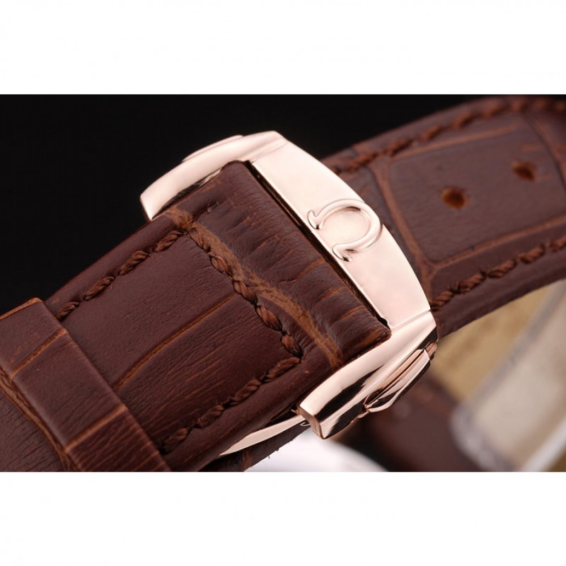 Correa de cuero Omega DeVille suizo de oro rosa Bisel Brown 7616