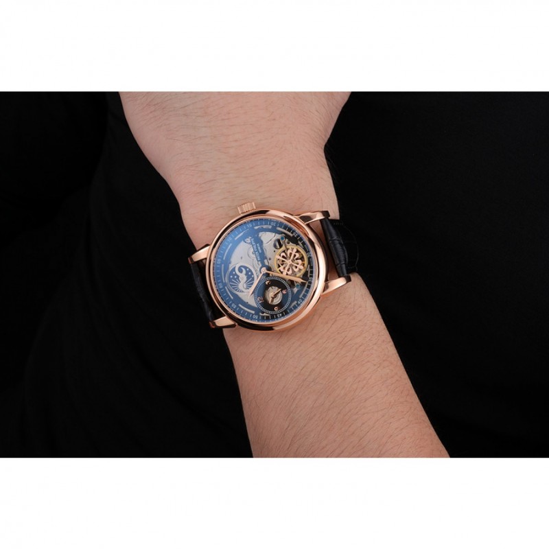 Correa de cuero Patek Philippe de hora dual Fase Lunar Tourbillon Negro skeletonised Caja Oro Rosa Negro