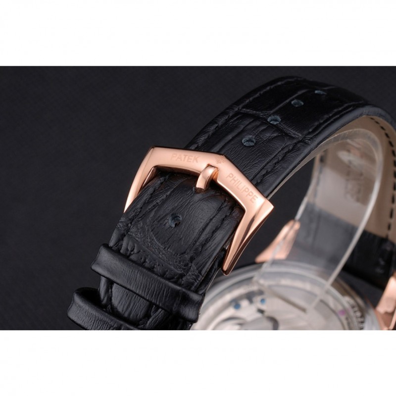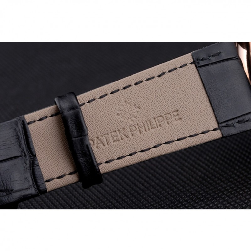 pulsera:correa de piel de cocodrilo negrocalor Patek Philippe Geneve en relieve con el logotipo y Patek Philippe inscrito rosa de 18 quilates chapado en oro gancho hebilla de cierre