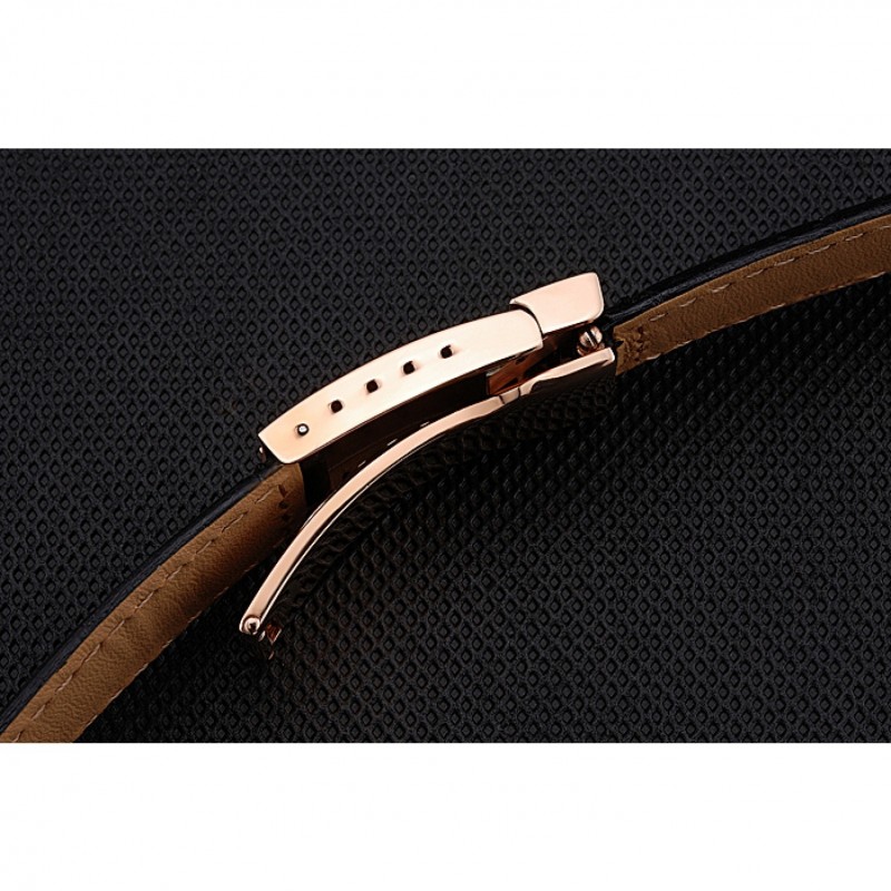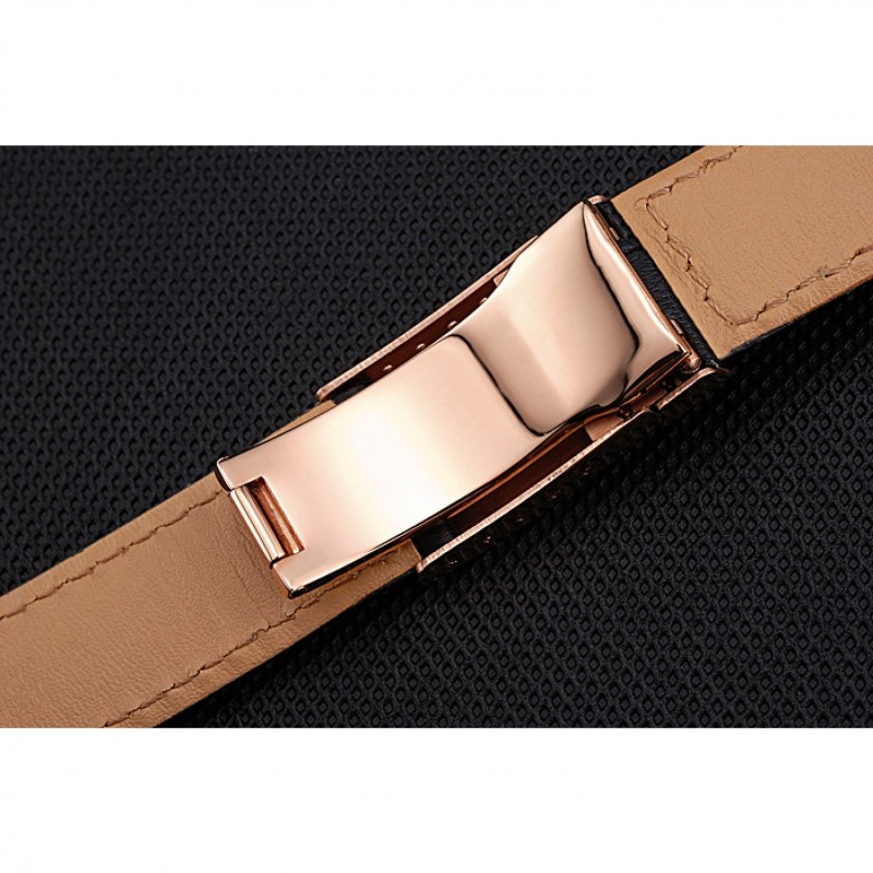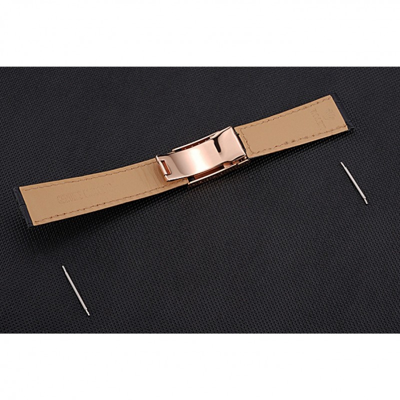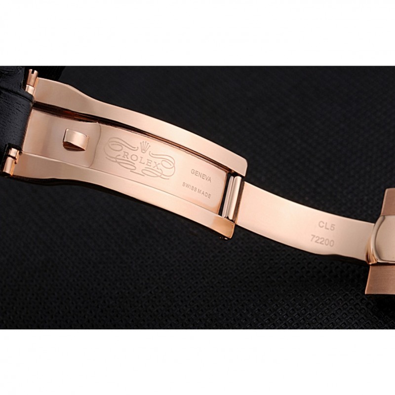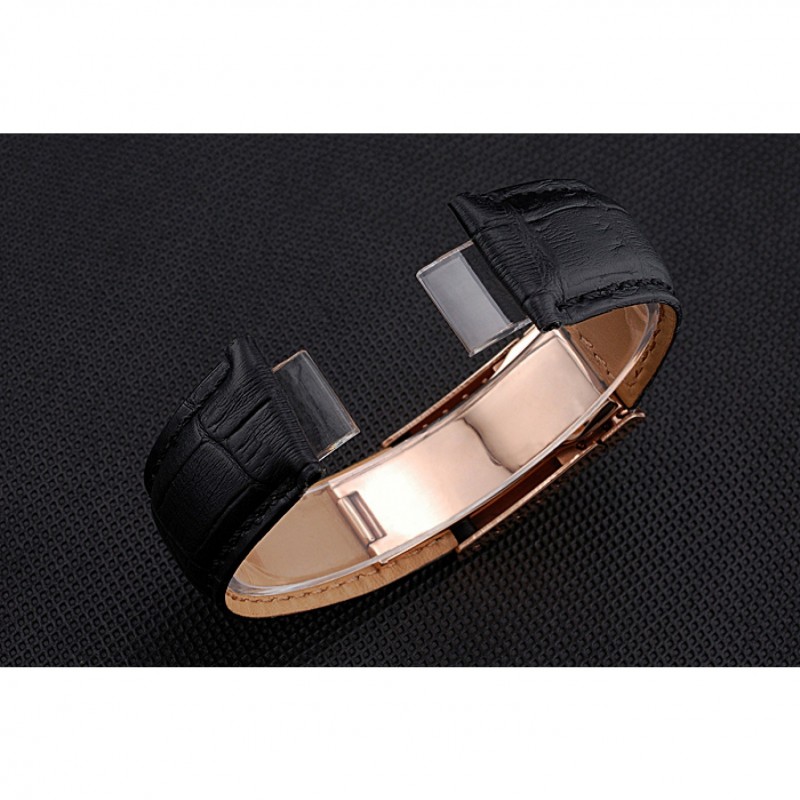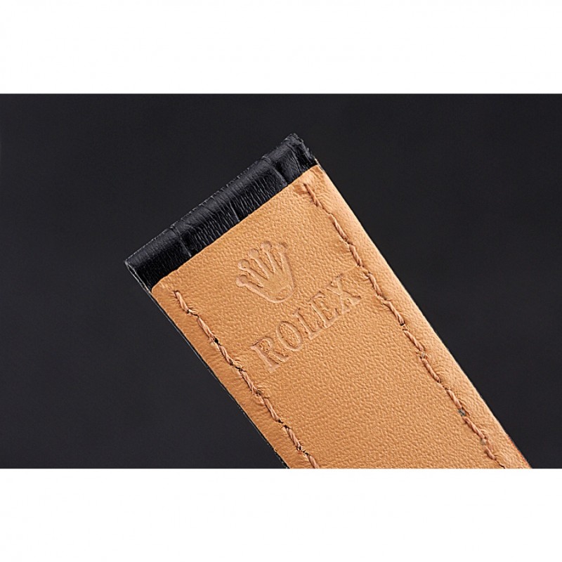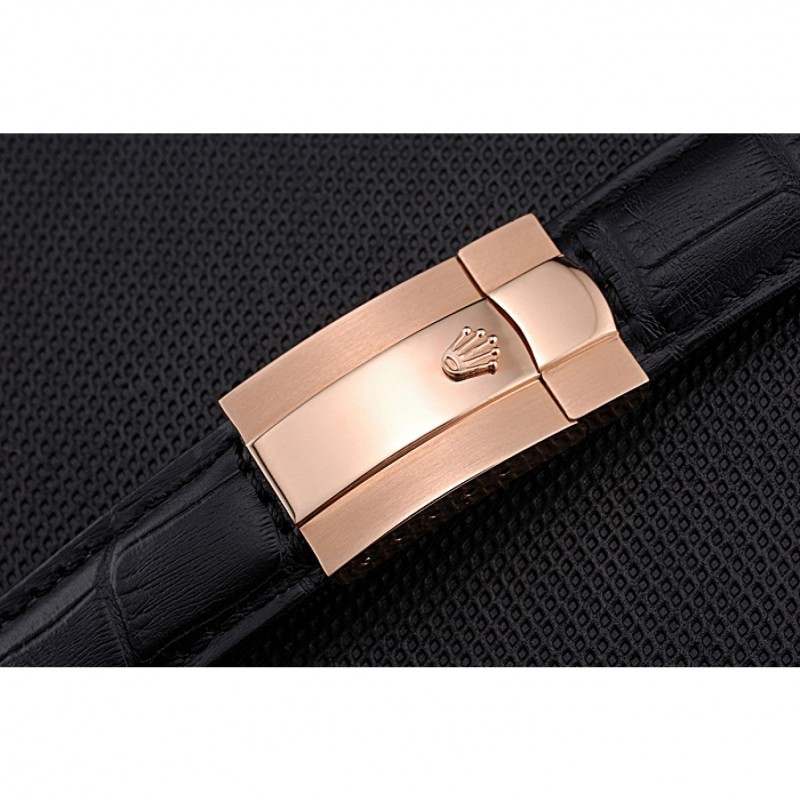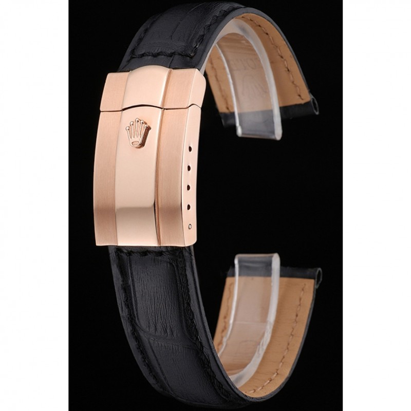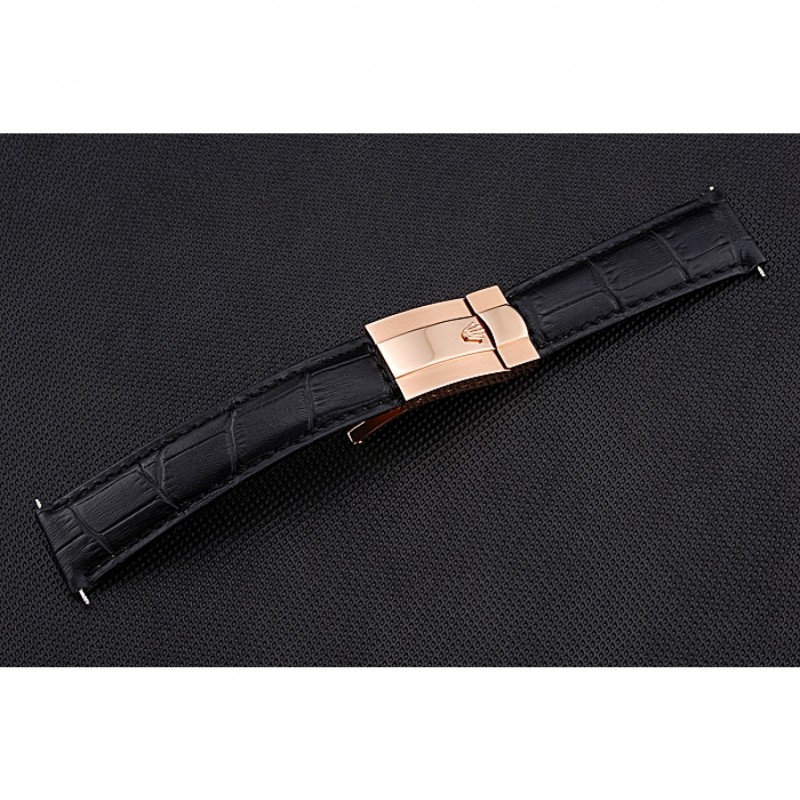 Pulsera: correa de cuero logotipo de Rolex y el calor en relieve de cocodrilo negro con 18k Rose- chapado en oro calado Rolex hebilla de despliegue logotipo