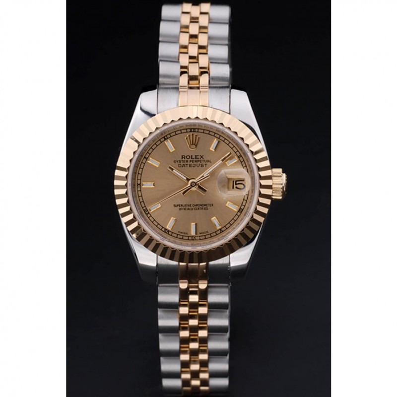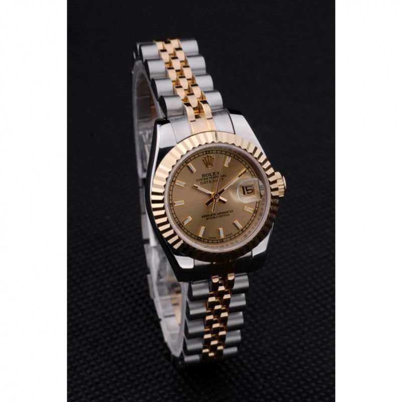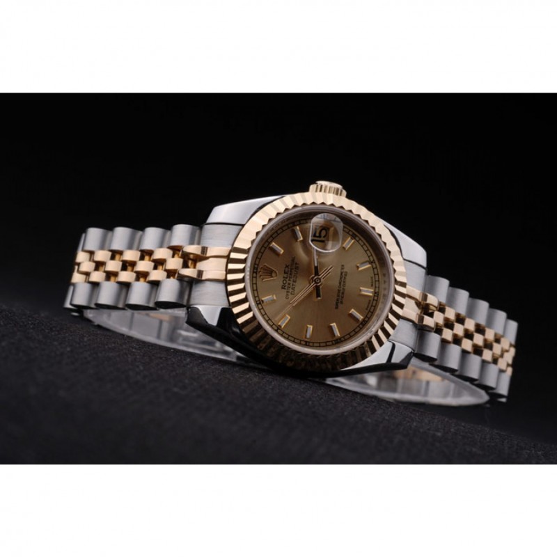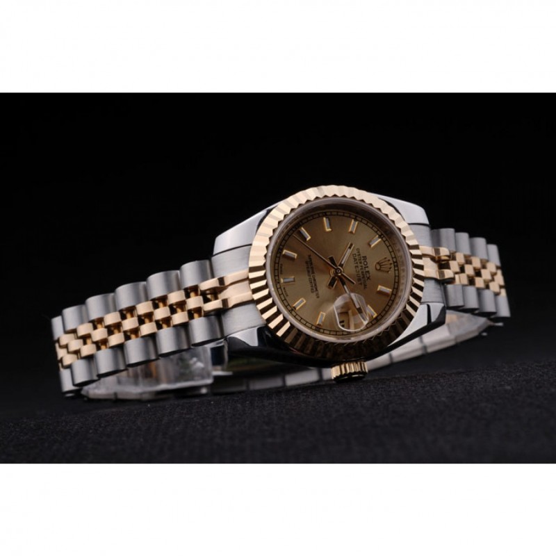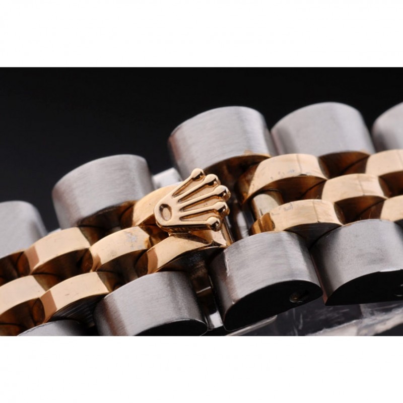 pulsera: Dos tonificado brazalete de eslabones en acero inoxidable pulido y oro amarillo de 18K chapado en acero con el grabado Rolex cierre oculto que muestra el logotipo de Rolex
