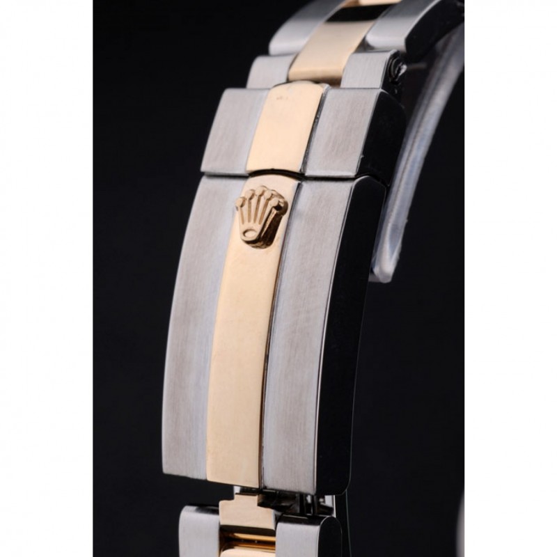 pulsera: Dos tonos pulsera de triple enlace en acero inoxidable pulido y oro amarillo de 18K chapado en acero con el grabado Rolex plegable en cierre desplegable que muestra el logotipo de Rolex