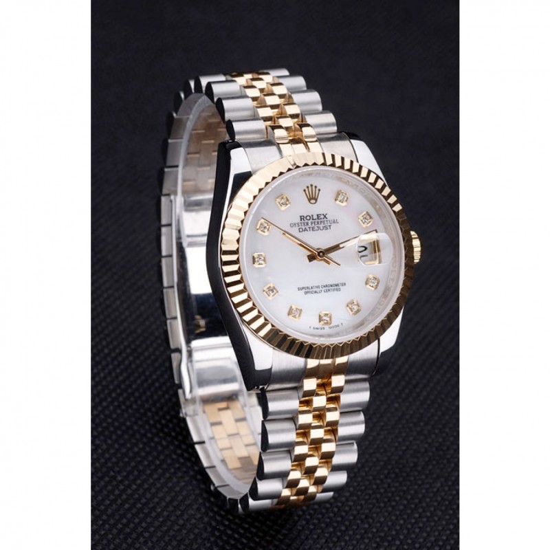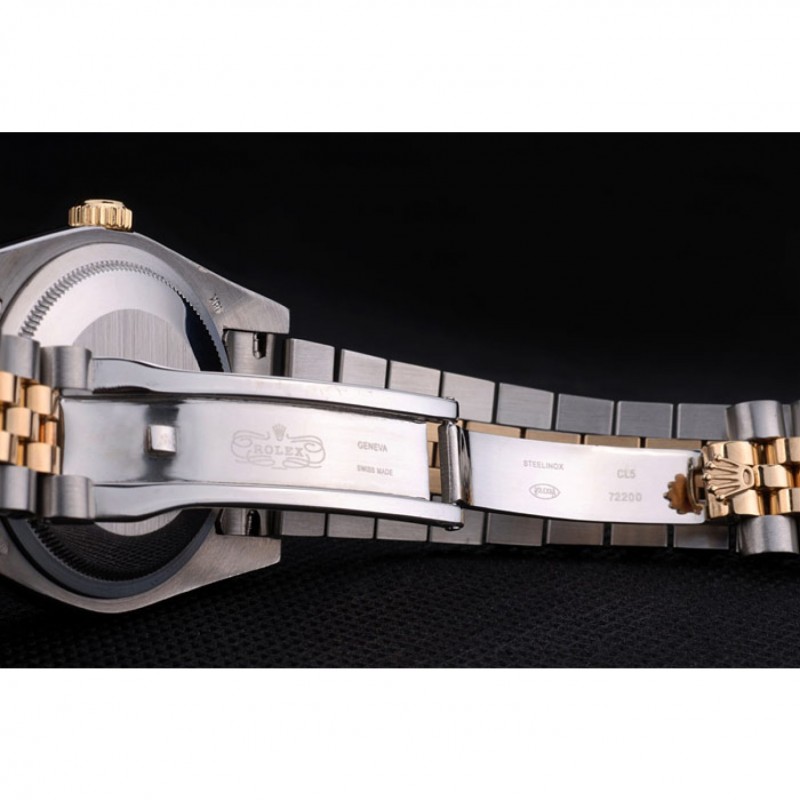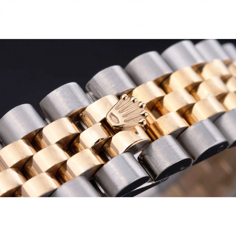pulsera: Dos tonificado brazalete de eslabones en acero inoxidable pulido y oro amarillo de 18K chapado en acero con el grabado Rolex cierre oculto que muestra el logotipo de Rolex