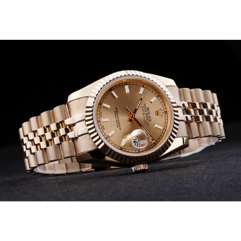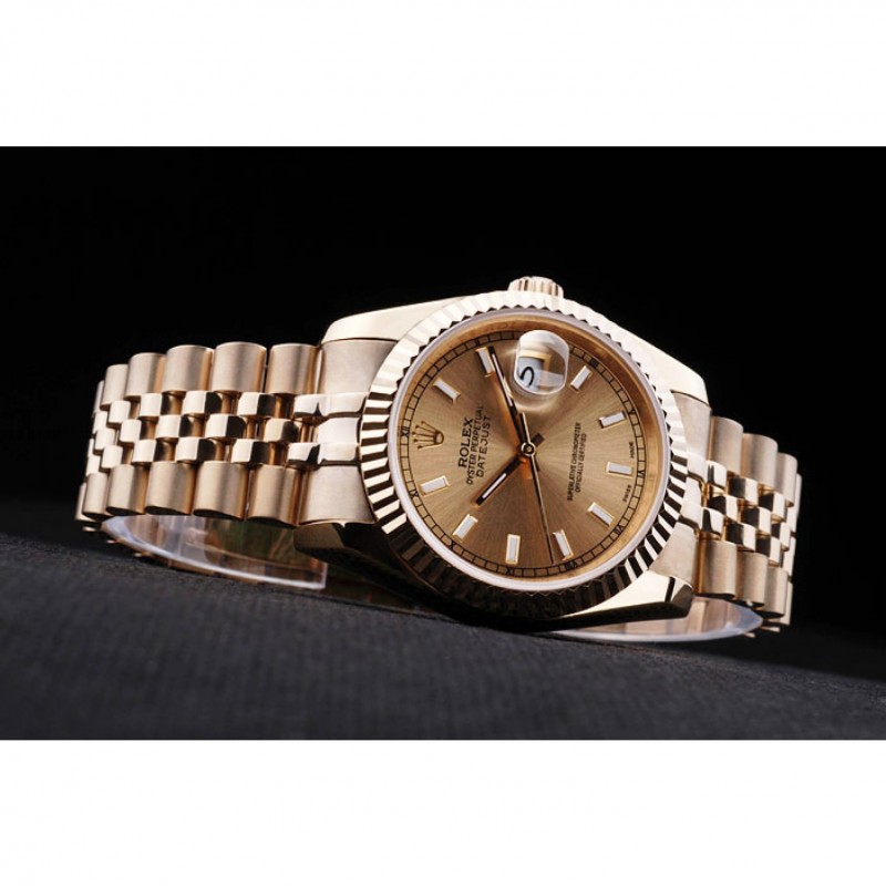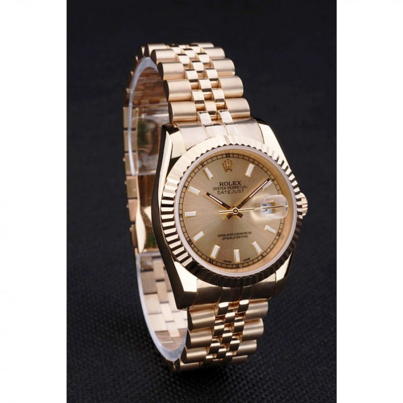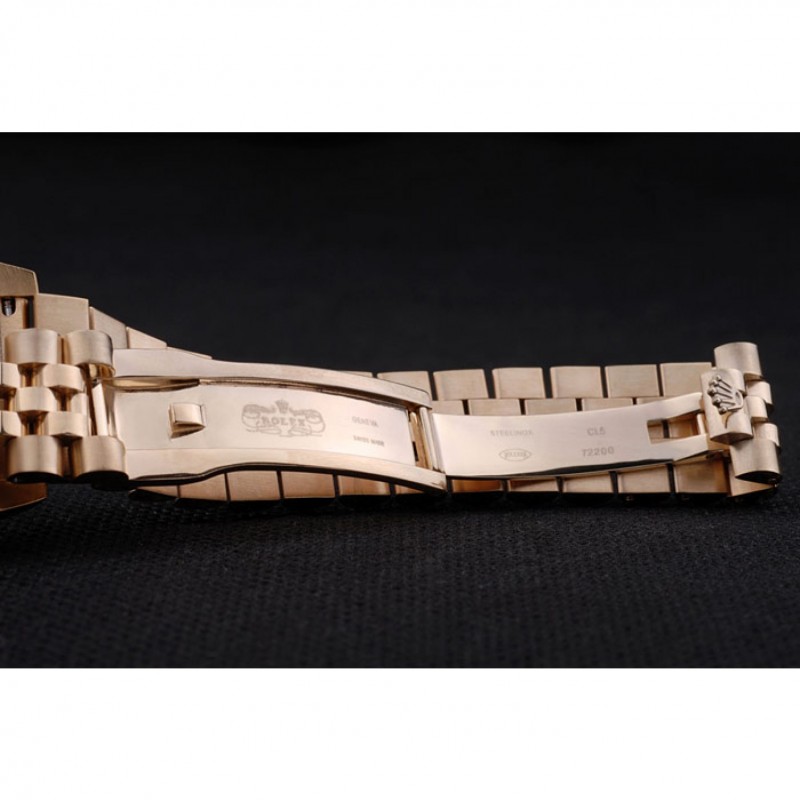 pulsera: 18k oro amarillo plateado brazalete de eslabones de acero inoxidable con grabado Rolex cierre oculto que muestra el logotipo de Rolex