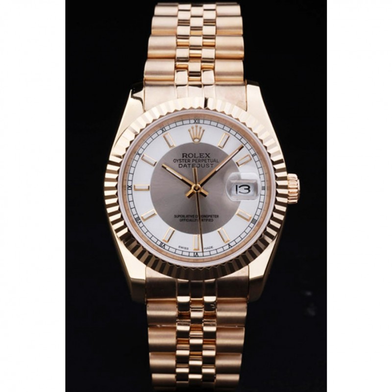 pulsera: 18k oro amarillo plateado brazalete de eslabones de acero inoxidable con grabado Rolex cierre oculto que muestra el logotipo de Rolex