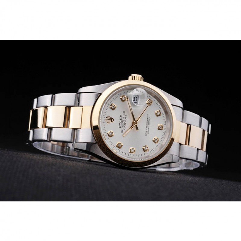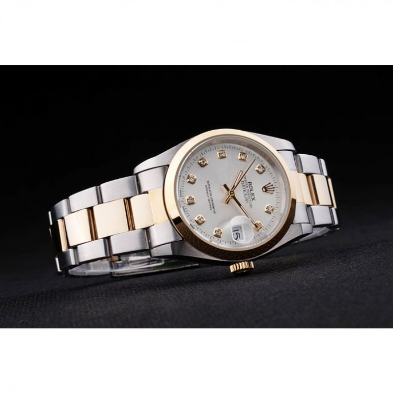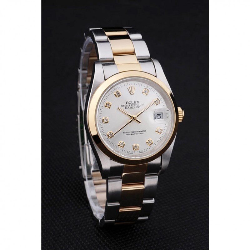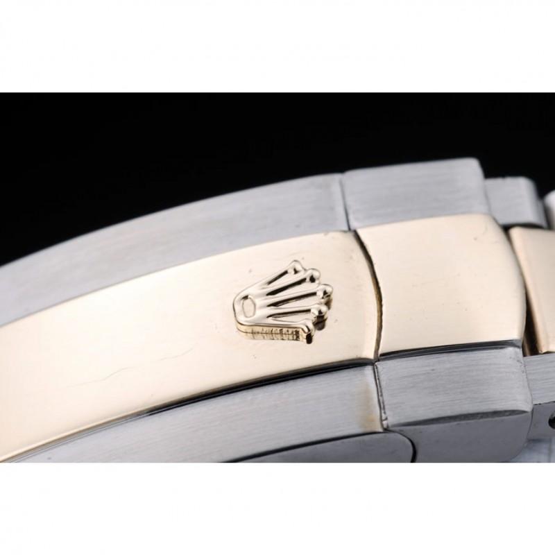 pulsera: Dos tonificado brazalete de eslabones en inoxidable cepillado acero y oro amarillo de 18K chapado en acero con el grabado Rolex plegable en cierre desplegable que muestra el logotipo de Rolex