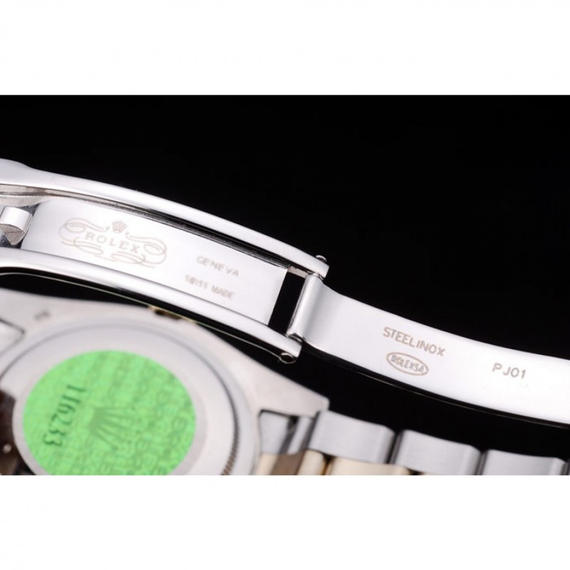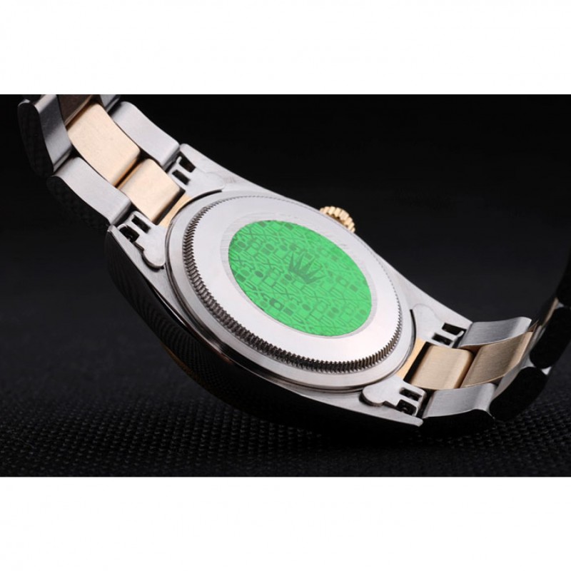Volver: de acero inoxidable de empuje en el caso de vuelta con el logotipo verde sello Rolex